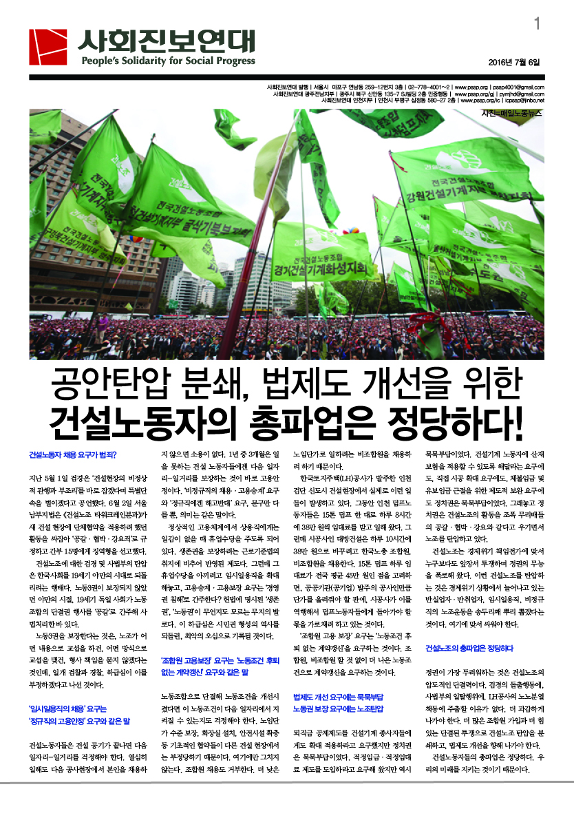 | 22 | 조합원 채용 요구가 범죄인가?- 건설노동자의 노동권을 보장하라! 건설노조 탄압 중단하라! | 사회진보연대 | 2016.06.10 | 4334 |