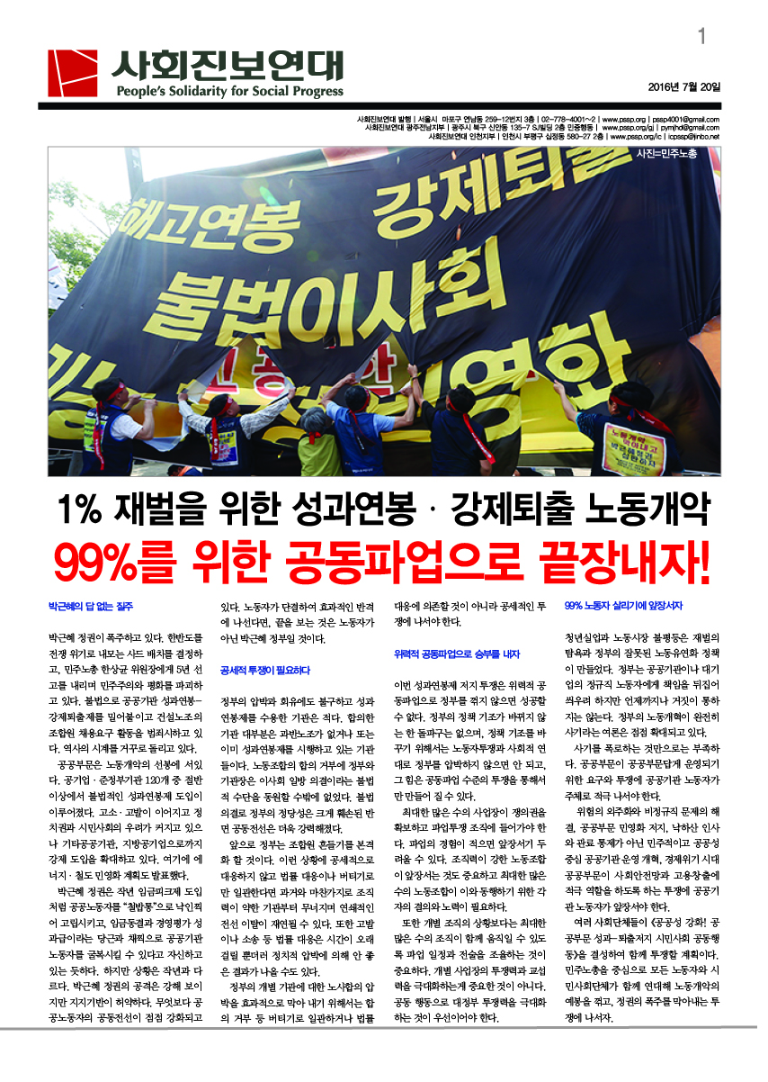 [7.20 민주노총 총파업 총력투쟁 인쇄물] 1% 재벌을 위한 성과연봉 강제퇴출 노동개악, 99%를 위한 공동파업으로 끝장내자!