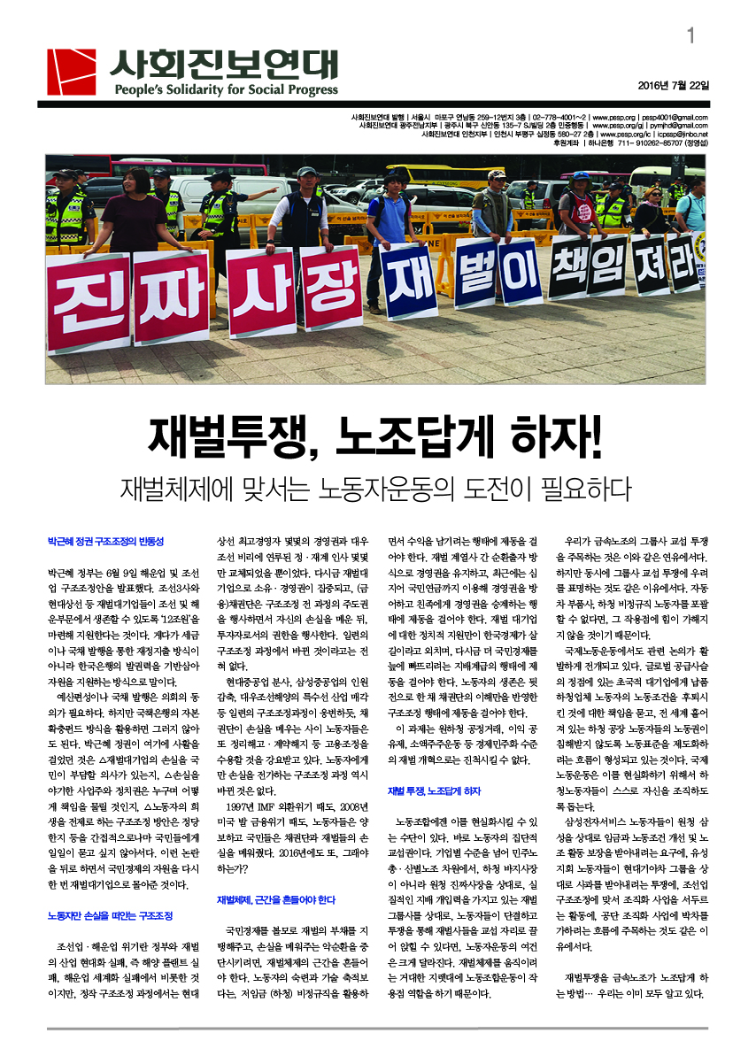 [노동절특별호] 재벌에게 책임을! 노동개악, 구조조정 막아내자!