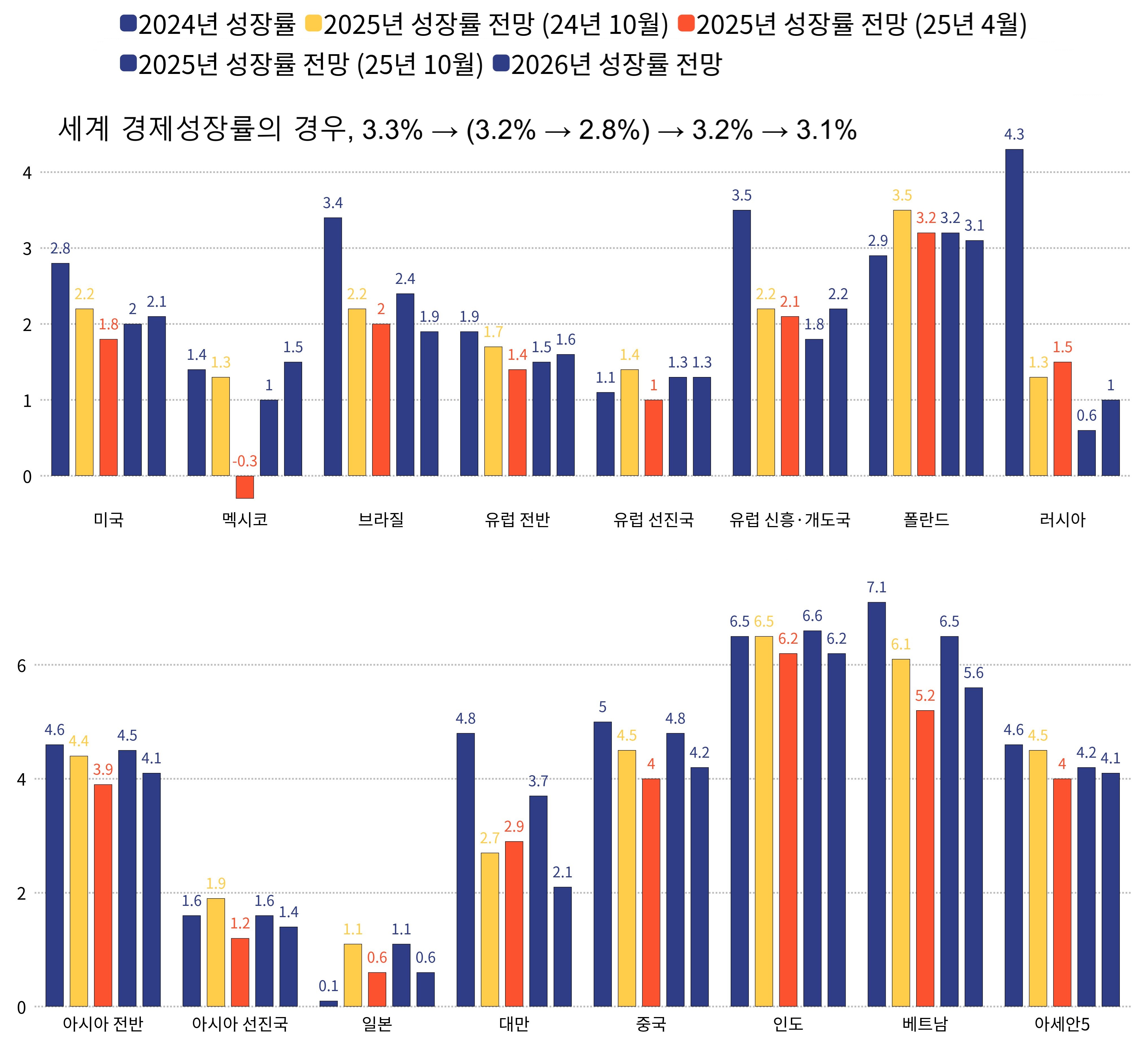 [그림] 2024~2026년 세계 및 각국 경제성장률 전망 (%)