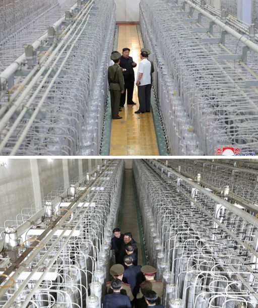 [사진] 북한이 2024년(위)과 2025년(아래) 각각 공개한 우라늄 농축시설