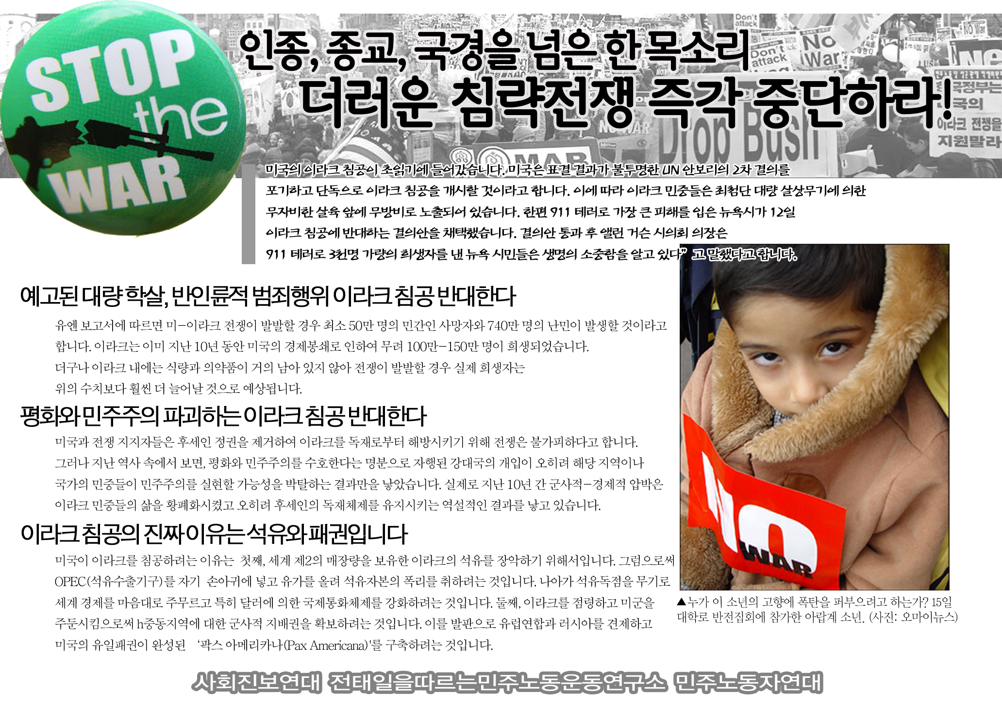 [전국민중연대(준)] 이라크 침공반대 10문10답 자료집