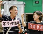 국가보안법을 둘러싼 치열한 전선 지난 9월 5일 노무현 대통령이 MBC 시사매거진 2580에 출연해 “국가보안법은 칼집에 넣어 역사의 발관으로 보내야 한다.”며 폐지에 대한 명확한 입장을 밝혔다. 그는 우선 폐지 뒤에 문제가 있다면 형법을 보완한다든지 하면 된다는 나름대로의 방향도 제시하였다. 그런 뒤 이 사회는 매일 국가보안법을 둘러싼 정치적 공방이 치열하게 전개되고 있다. 한나라당의 박근혜 대표는 노무현 대통령의 발언 직후부터 자신의 “대표직을 걸겠다.”느니 “한나라당의 명운을 걸겠다.”는 등의 강경발언을 쏟아내더니 급기야 9월 9일 특별기자회견을 통해 이를 공식화했다. 같은 날 주로 구정권 시절에 국회의장, 국무총리, 장관, 장성 등 주요 요직에 있던 소위 잘 나가던 사람들이 무려 1,400명이나 서명을 받아서 ‘자유와 민주주의를 위한 구국선언’을 발표하기에 이르렀다. 4.15 총선 직후부터 서서히 달아오르기 시작한 국가보안법 개폐 논쟁은 지난 8월 23일의 국가인권위원회의 전면 폐지 권고, 8월 26일의 헌법재판소의 국가보안법 7조 1항과 5항에 대한 전원 일치 합헌 결정, 9월 2일 대법원의 한총련 대의원에 대한 유죄 확정 판결로 이어지면서 우리 사회의 보혁 대결 구도로 나아가고 있는 양상이다. 열린우리당은 폐지와 개정 사이에서 오락가락하던 분위기가 노무현 대통령의 발언으로 폐지 후 보완으로 당론이 정해졌고, 한나라당은 총선 직후 박근혜 대표마저 북한을 적국으로 규정한 국가보안법 2조의 ‘정부참칭’ 부분을 삭제할 수 있다는 입장에서 후퇴하여 불고지죄마저도 존치시키는 소폭 개정의 입장으로 당론을 모아가고 있다. 이런 정치 상황들은 국가보안법이 제정된 1948년 이래 처음 있는 현상이고, 최근에는 김대중 정부 시절인 1999년에서 2001년 사이의 개폐 논쟁이 폐지 운동 진영의 패배로 마무리된 이후에 처음 맞는 상황이다. 주지하다시피 현재의 정치구도에서 열린우리당-민주노동당-민주당이 폐지 입장으로 정리되어 있는 상황이다. 물론 청와대와 정부도 대통령의 발언 이후 폐지 입장으로 정리되어 있다. 반면 정치세력 상으로는 열세인 한나라당에는 소수 의원을 가진 자민련만이 우군으로 존재하고 있다. 물론 한나라당의 입장에는 조중동과 같은 막강 언론들이 붙어 있어 여론을 선도하고 있으며, 국가보안법을 사수하려는 의지로 뭉친 극우집단들이 자리하고 있다. 이들은 그야말로 결사항전의 의지를 불태우고 있는 것이다. 반면 전국의 301개의 단체로 재발족된 국가보안법폐지국민연대는 극우집단들의 광적인 국가보안법 사수투쟁에는 비할 바 없이 조용하게 나날을 맞고 있다. 이전에는 국가보안법 폐지운동이 적극적이고, 열정적이었다고 한다면 현재는 이런 양상들이 뒤바뀌어 기이한 현상을 낳고 있다. 국가보안법 폐지운동이 넘어야 할 산들 4.15 총선 직후 운동진영은 국가보안법 폐지를 위한 더 없이 좋은 조건이 형성되었으며, 올해 하반기 이내에 폐지시켜야 된다는 데 이견이 없었다. 그것은 일단 국가보안법의 폐지를 지지할 수 있는 열린우리당의 개혁적 성격과 민주노동당의 원내 진입이라는 조건, 이들이 국회 의석의 과반수를 차지한다는 면에서 이런 예상을 할 수 있었고, 그런 판단은 대체로 맞아 떨어졌다. 열린우리당이 당론으로 폐지를 결정할 수 있을 것이란 기대 속에서도 한편으로는 개정론을 앞세운 의원들의 반발도 만만치 않았다. 그런 어지러운 상황은 일단 노무현 대통령의 발언으로 정리되었다. 국회 의석 과반수를 점한 열린우리당이 폐지 당론으로 정했고, 전면 폐지 당론을 일찍이 정한 민주노동당이 결합하고 있으며, 대체입법론의 미련을 버리지는 못했지만 민주당이 합세하고 있으므로 단순 계산으로는 이번 정기국회에서 국가보안법 폐지는 무난할 것으로 예측할 수 있다. 그럼에도 불안하다. 과연 국가보안법이 폐지되는가에 대한 의구심이 자꾸 드는 것은 이유는 무엇인가? 국가보안법 폐지로 가기 위해서 넘어야 할 산은 무엇인가? 먼저, 한나라당의 결사적인 반발이다. 이들의 입장들을 종합해서 보면 국가보안법이 대한민국의 정통성을 지켜온 법률일 뿐만 아니라, “자유민주주의와 시장경제의 마지막 안전장치”라는 것이다. 그들로서는 국가보안법이 폐지된다는 것은 상상도 할 수 없는 일이다. 국가보안법이 주로 대한민국 내부의 정치적 반대세력들을 탄압하는데 악용되었다는 점보다는 북한의 적화야욕을 막아온 방파제와 같다는 인식을 실제로 갖고 있는 듯하다. 그들의 인식 속에서 체제의 수호를 위해서는 헌법이 소중한 것이 아니라 국가보안법이 소중한 것이고, 그래서 그들에게는 그들의 이데올로기의 원천이고, 신념의 법률적인 표현으로 보고 있다. 국가보안법을 없앤다고 하는 것은 집에서 주춧돌을 제거하는 것처럼 급격하게 국가를 지탱해온 버팀목을 제거하는 것과 똑 같다고 인식한다. 그렇기 때문에 그들은 결사항전하는 것이다. 그래서 그들은 쉽게 이분법을 동원하여 국가보안법 폐지를 주장하는 정부와 여당 등을 좌파로 몰아부치며, 나아가서는 용공성을 부각시킨다. 거기에 국가보안