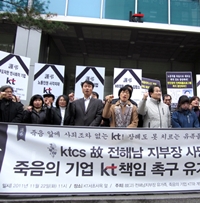 2011년에만 15명의 죽음, KT는 ‘인력퇴출프로그램’을 폐지하고 살인경영을 멈춰라! 지난 12월 3일 민주노총 서울본부 희망연대노동조합 케이티씨에스(KTcs)지부 전해남 지부장의 장례식이 있었다. 사망 후 두 달 만에 치러진 장례식이었다. 전해남 지부장은 10월 3일 오전 11시40분 충남 공주시 탄천면 한 도로가에서 불에 탄 자신의 승용차에서 숨진 채 발견됐다. 20년 넘게 KT에서 기술직으로 일했던 그는 일에 필요한 여러 개의 자격증까지 따며 성실하게 근무해왔다. 그러나 2008년 갑작스런 구조조정으로 인해 임금 30%를 삭감당한 채 KT의 자회사인 KTcs로 옮겨 낯선 고객상담(VOC)업무를 담당했다. 그는 사직을 강요받았을 때 “임금은 줄어들지만 자회사로 가면 안정된 정년이 보장”될 거라 스스로를 위로하며 퇴직을 받아들일 수밖에 없었다. 임금 반토막, 원거리 발령, 전화배치가 부른 참사 그렇게 3년째 일해 오던 회사에서 전해남 지부장은 지난 6월 또 다시 강제사직을 강요받았다. 그가 이를 거부하자 회사는 부여에서 대전으로 원거리 발령을 내고 일방적으로 업무를 전환 배치했다. 또한 10월부터 일방적으로 임금을 절반으로 삭감했다. 이후 전해남 지부장은 주위에 어려움을 호소했고 극심한 스트레스와 우울증에 시달리다가 어느 날 시신으로 발견되었다. 적은 월급이나마 정년까지 안정된 삶이 보장될 거라는 작은 기대는 무참히 짓밟혔으며, 절망 끝에 그는 아내와 세 딸을 남겨두고 목숨을 끊은 것이다. 그의 유가족들은 KT가 책임지고 사과할 것을 요구하며 2달여간 투쟁을 이어왔지만 경제적 어려움과 심리적 고통을 견디지 못해 싸움을 접을 수밖에 없었다. KT의 반노동/반인권적 퇴출프로그램 전해남 지부장이 겪은 일련의 사건들은 지난 수년간 KT와 그 계열사에서 비슷한 형태로 벌어져 왔다. 2002년 민영화 이후 구조조정은 계속되었고 노동자들은 잘려나갔다. 2003년 5,505명이 명예퇴직이라는 이름으로 퇴사했고, 2001년과 2008년 KT업무의 일부를 외주화하면서 대규모 노동자들이 자회사로 옮겼다. 또한 2009년에도 5,992명이 강제사직을 당해야 했다. 그 과정에서 무수히 많은 노동자들이 육체적 정신적 고통에 시달리며 죽어갔다. 2011년 한 해 동안에만 KT에서 15명의 노동자들이 죽었고, 이석채 회장이 취임한 2009년 이후 42명이 유명을 달리했다. 이러한 잇따른 죽음의 원인의 중심에는 ‘C-Player 프로그램’이라는 이름의 반노동·반인권적 퇴출 프로그램이 있다. 강제사직을 요구하고 이를 거부하는 사람들에 대해 원거리 발령, 업무 전환배치, 모멸감․자괴감을 느끼는 교육프로그램 투입, ‘집단 왕따’ 등을 지시하는 것이 바로 C-Player 프로그램이다. C-Player 프로그램은 KT가 C등급 노동자(업무부진자 또는 핵심 퇴출 대상자)들을 지정해서 표준업무절차(Standard Operating Procedure)라는 프로그램에 따라 기한 내에 퇴출시키라는 내용을 담고 있다. 표준업무절차는 업무를 못하는 사람들, 114 잔류자, 민주동지회 소속 근로자, 업무 부진자 등을 프로그램에 의해서 퇴출시키는 일련의 과정으로 알려져 있다. KT에서 25년간 일한 관리자의 양심선언내용(2011년 4월)으로 공개된 <부진인력 퇴출 관리 방안>에 의해 개인별 시나리오까지 만들어 직원들의 퇴출을 계획적으로 진행하고 있는 것이 확인되었다. 퇴직을 거부한다는 이유로 여성 노동자에게 전봇대에 오르게 하거나 준비 기간도 없이 울릉도 등으로 발령 내는 사례는 이미 악명이 높으며, 민영화 이후 10년 동안 1만 3천여 명이 이 프로그램에 따라 퇴출된 상태다. 살아남은 자들도 업무 부적응, 노동강도 강화, 스트레스와 압박감 등으로 매우 심각한 상태에 놓여 있다. KT에서 죽은 노동자들의 사인 대부분은 자살, 과로사, 돌연사, 업무 중 교통사고 등이었다. 유해물질을 취급하는 사업장이 아닌 곳에서 이렇게 죽음이 이어지고 있다는 점에서, 인력퇴출프로그램으로 인한 과도한 스트레스와 불안이 죽음을 불러온 게 분명하다. 죽음의 기업 KT, 이석채 회장은 퇴진하라! 상황이 이러한데도 KT는 노동자들의 잇따른 죽음에 어떠한 사과도 하지 않았다. 심지어 ‘욕실에서 넘어져 사망’했다거나 ‘개인사로 인한 단순 비관 자살’했다는 등 유언비어를 만들어 퍼뜨리는 일도 자행하고 있다. 노동자들이 죽어가는 동안 KT의 매출액은 두 배 가까이 증가했으며 매년 1조 원에 이르는 순이익이 발생하는 기업으로 성장했다. 2011년 KT 상무급 이상 경영진의 보수는 전년 대비 124% 인상되었다. 이러한 비도덕적이고 반인륜적인 ‘살인경영’의 중심에는 올해 임기를 마치고 연임을 노리고 있는 이석채 회장이 있다. 이명박 정부의 낙하산 인사로 KT에 영입된 이석채 회장의 취임 이후, 임원 보수 한도는 364% 증가한 반면 노동자들의 평균임금은 5년간 총 13.1% 증가에 불과했다. 이석채 회장은 ‘올레 KT’를 내세우면서 노동자들에게는 해고를 강요해 죽음에 이르게 하고, 2G서비스를 종료하고자 하는 등 소비자들을 우롱하고 있다. 또한 이석채 회장은 송파구 문정동에 있는 원래 집을 그대로 두고 회사비용 10억 원을 들여 도곡동 타워팰리스를 사택이라는 명목으로 장만해 지내고 