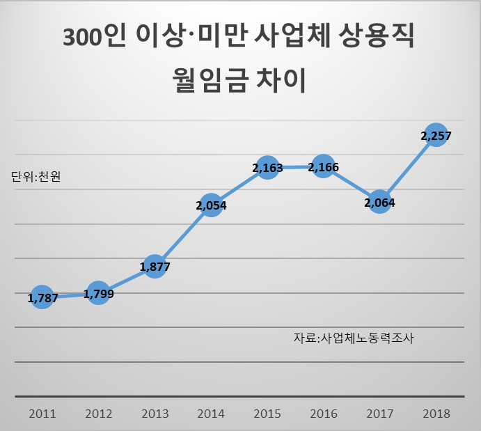 필자는 보고서에서 1986~2016년 임금 격차 추이를 분석하면서, 임금 격차의 핵심 원인을 역사적으로 형성된 자본집약도 격차라고 지적했다. 1987년 이후 수출제조업과 대기업 자본가들은 노동조합 임금인상투쟁에 대응해 노동을 절약하는(노동생산성을 올리는) 자본투자를 늘리지 않을 수 없었다. 반면 노동조합 조직률과 투쟁이 약했던 내수서비스와 중소기업에서는 자본투자 대신 저임금을 이용해 사업을 지속해갔다. 이렇게 형성된 자본투자 격차는 지금까지 이어져 제조업/내수서비스 간, 대기업/중소기업 간 엄청난 노동생산성 격차로 고착화되었다. 외환위기 이후 구조조정으로 해고된 노동자가 내수서비스업에 영세자영업자로 진입하고, 또 노동시장유연화로 아웃소싱이 이전보다 자유로워지면서, 자본집약도 격차와 노동생산성 격차는 더 크게 벌어졌다. 오늘날 임금격차는 사업주의 악랄함의 차이가 아니다. 노동생산성으로 표현되는 사업주 능력의 차이다.