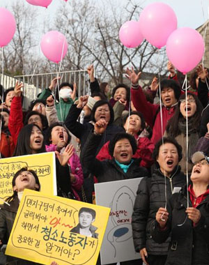 저임금 비정규직 노동자들의 권리선언 따뜻한 밥 한 끼의 권리 캠페인 “누군가에게 밥은 삶의 기쁨이고 또 누군가에게 ‘밥’은 ‘서러움’입니다. 그녀들의 서러운 한 끼 밥 뒤에는 살인적인 저임금, 비정규직이라는 고용형태가 존재합니다.” 지난 3월 3일, 신촌에서는 ‘따뜻한 밥 한 끼의 권리’ 1차 거리 캠페인이 시작되었다. 이후 4월 16일에는 여의도역에서 2차 캠페인을, 26일에는 서울대학병원 안에서 3차 캠페인을 진행할 예정이다. ‘따뜻한 밥 한 끼의 권리’ 캠페인은 한 끼의 밥조차 따뜻하게 챙겨먹을 수 없는 청소, 간병 노동자들이 처해있는 열악한 노동조건을 폭로하고 이들의 박탈당한 권리를 알려내는 대중 캠페인이다. 캠페인단은 언론기고, 거리선전, 영상제작, 증언대회를 통해 대중적 지지를 호소하고 있다. 캠페인은 지난 2009년 10월부터 공공노조의 전략조직화사업의 구상으로 시작되었다. 대학교에서 일하는 청소용역 노동자들에 대한 지역별 현장조직화 사업에 사회단체들이 참여하여 캠페인단을 구성하였다. 저임금과 열악한 노동조건에 시달리는 비정규직 노동자들이 기하급수적으로 늘어나고 있는 현실에서, 한 끼의 밥조차 제대로 먹을 수 없는 여건에 처한 수많은 노동자들이 존재한다. 하지만 이러한 암담한 현실은 사회적으로 전혀 드러나지 않고 있다. ‘밥 한 끼의 권리’를 빼앗기고 있는 수많은 노동자 중 캠페인단이 우선 주목하고 있는 노동자들은 청소, 간병노동자들이다. 이들의 노동현실을 살펴보자. 찬밥을 강요당하는 비정규직 노동자: 존재하나 존재하지 않는 유령 먼저 청소 노동자의 현실을 살펴보자. 대학건물, 관공서 등 빌딩이라면 어디든 청소하는 노동자들이 존재한다. 1,600만 명이 조금 넘는 전체 임금노동자 중 청소원은 377,927명으로 2.3%를 차지한다. 이처럼 많은 숫자의 노동자들은 아무도 출근하지 않은 이른 새벽부터 늦은 오후까지 온종일 건물을 쓸고 닦고 광을 내지만, 이들의 존재는 가려져 있다. 단순히 ‘청소 아줌마’로 분류되는 이들은 81% 이상이 여성이고, 여성 중 41%가 60세 이상의 고령이다. 마치 유령처럼 존재하나 존재하지 않는 것처럼 여겨지는 이들, 그러므로 이들이 겪고 있는 비상식적인 노동환경에 대해서는 더욱 알려져 있지 않다. 극단적인 저임금과 불안정한 고용형태는 청소노동자의 열악한 식사와 휴게공간으로 이어진다. 청소 노동자들은 대부분 오전과 점심 하루 2회 1~2시간 휴게시간을 갖는데 이 시간조차 온전한 식사 및 휴식시간이 되지 못한다. 밥 먹는 시간도 ‘대기 상태’로 분류되어 ‘건물 청결’에 있어 도발 사고가 난다던가, 더러운 오물이 쏟아졌다던가 하면 어김없이 달려가야 하는 것이다. 휴게 및 식사시간은 비 근무시간이므로 임금계산에 산정되지 않는다. 그럼에도 불구하고 어떤 업체에서는 근무와 관련된 조회나 교육을 휴게시간에 하거나, 이 시간대에 개인 업무를 보는 것이 적발될 경우 업무평가에 반영해 여름 휴가비를 차등 지급 하는 식으로 노동자들을 옥죄는 행위를 일삼아 왔다. 전체 청소노동자들 중 회사로부터 식비를 지급받는 노동자는 41.1%인 반면, 어떤 방식의 식사지원도 전혀 받지 못하는 노동자는 43.2%에 이른다. 식사비 지원을 받지 못한 노동자들은 새벽부터 오후 4시까지 힘든 노동을 버티기 위해 하루 두 끼의 도시락을 직접 싸와야 한다. 용역업체가 식사비를 지원하더라도 점심 한 끼를 구내식당에서 이용할 수 있는 식권 지원이거나 1인당 쌀 10킬로그램 제공이다. (이 정도면 매우 후한 지원이다.) 일부에서는 현금지원을 받고 있으나 금액이 불충분하여 노동자들이 추가 부담하여 쌀과 부식을 구입하고 밥을 지어 먹는다. 휴게 시설의 경우는 더욱 열악하다. 청소노동자들을 위한 휴게, 수면, 식사를 할 수 있는 별도의 시설을 갖추고 있는 경우는 58%에 불과하고 별도시설은 아니나 간이시설을 만들어 휴게와 수면을 취할 수 있도록 하는 사업장이 34.2%이며, 7.8%는 아예 별도의 휴게시설을 갖추고 있지 않고 있다. 휴게시설의 규모와 요건에 관한 표준화된 법적 기준이 없기 때문에 업체에 따라 천차만별이다. 성신여대의 경우, 과학관에 휴게실을 만들었는데 남자화장실 변기 위에 판자만 깔고 만들어 놓았다. 심지어 배수구를 막지도 않아 아무리 환기를 시켜도 악취가 가시지 않는다. 식대 역시 따로 지급되지 않아 도시락을 싸오지만 전자제품 사용마저 금하고 있어 대부분 찬밥으로 끼니를 때울 수밖에 없다. 국이나 찌개라도 데워먹으려 하면 강의실에 냄새가 올라간다고 다그치기 때문에 한겨울에도 찬밥을 씹어 삼킬 수밖에 없다. 고려대학 병원의 경우, 휴게 공간이 너무도 비좁아 창고로 사용하는 비트실(전기 설비나 각종 배관이 지나가는 장소)에서 잠시 몸을 쉬거나 식사를 해결했는데, 이미 병원 측에서 석면가루를 이유로 사용을 금지했다. 이번에는 간병노동자들의 현실을 알아보자. 간병노동자에게는 공식적으로 정해진 식사시간이 없다. 환자의 식사를 보조하고 잠깐 짬을 내서 식사를 해야 하는데 이 역시 간병인에게 협조적인 환자를 만날 경우에만 허용된다. 물론 환자가
