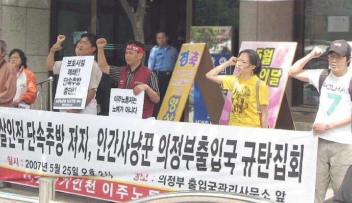 단속·추방 중단과 노동허가 쟁취를 위한 전국적-지역적 연대망을 강화하자 [%=사진1%] 법무부는 살인적 단속·추방 계획을 즉각 철회하라! 다가오는 8월, 이주노동자에 대한 대대적인 단속과 추방이 예고되고 있다. 법무부는 6월 7일 보도 자료를 통해 6월 1일 부터 7월 31일까지 노동부와 합동으로 주요 사업장을 직접 방문하여 계도활동을 전개 한 후 금년 8월부터 연말까지 관계기관 합동으로 불법체류자에 대한 강력 단속을 실시하기로 발표 하였다. 고용허가제 3년이 되는 8월을 앞두고 미등록 이주노동자들에 대한 대대적 단속과 강제 출국 조치를 예고하고 있는 것이다. 많은 사람들은 이번 단속이 예전의 어떤 단속보다 강력하고 규모도 클 것으로 내다보고 있다. 정부의 의도대로 이번 단속·추방이 실행될 경우 수많은 이주노동자들의 강제 추방, 단속과정에서의 심각한 인권침해가 불을 보듯 뻔하며 끔찍한 불상사마저 일어날지 모른다. 이번 강제 단속추방 방침은 법무부와 정부의 잘못을 미등록이주노동자에게 전가시키며 이를 회피, 은폐하기 위한 변명에 불과하다. 즉, 법치라는 미명 아래 이주노동자의 인권보장을 주장하는 사회적 여론을 잠재우고 미등록 감소라는 단기적 행정목적 달성을 위해 강제 단속과 강제 퇴거의 칼날만을 세우고 있는 것이다. 따라서 정부는 미등록이주노동자 양산이 잘못된 정부 정책과 고용허가제로 인해 발생했음을 인정하고 이에 합당한 근본적 해결 방안을 제시해야 한다. 정부는 한국 사회에서 노동자의 최하위선 그리고 인권의 마지노선을 형성하고 있는 미등록 이주노동자에 대한 강도 높은 탄압과 반인권적이고 살인적인 단속·추방 계획을 당장 철회해야 한다. 그리고 지금도 자행되고 있는 강제 단속·출국 조치를 즉각 중단하고 반인권적보호소를 폐지해야 한다. 고용허가제가 아닌 노동허가제 쟁취를 위해 한편 이에 앞서 법무부와 노동부는 2007년 5월 22일 국무회의를 통해 그간 편법적인 인력활용 등의 논란을 빚어 온 산업연수제를 폐지하고 고용허가제로 외국인력제도를 통합할 것이며 이를 위해 출입국관리법시행령 개정(안)을 결정했다. 정부는 이러한 일원화 결정이 이주노동자의 모든 문제를 해결 할 수 있으며 고용허가제가 이주노동자의 실질적 권익을 보장해 주는 듯 선전하고 법무부는 법치의 확립이라는 근시안적 태도로 강력 단속 방침만을 고수하고 있다. 하지만 고용허가제는 결코 이주노동자들을 위한 합리적 제도가 아닌 이주노동자들을 하나의 노동력으로써 관리·통제하기 위한 불합리한 제도적 장치에 불과하다. 고용허가제가 담고 있는 사업장 이동의 제한은 노동자의 기본권인 자유로운 취업권을 심각하게 침해하고 있다. 뿐만 아니라 현행 고용허가제가 이주노동자에게 근로기준법상의 근로자성을 인정하고 노동3권의 적용대상으로 인정 하고 있지만, 사업장 이동 문제가 체류 자격과 연동되어 있는 상황에서 이주노동자가 사용자를 상대로 이러한 권리를 행사하기는 매우 어려운 상태이다. 따라서 사용주는 사업장 이탈 신고를 무기로 이주노동자에게 노동조건이나 처우 등을 불리하게 변동하고자 할 가능성이 매우 높으며 사실상 이주노동자에 대한 임금덤핑 환경을 조성하는데 큰 역할을 하고 있는 것이다. 또한 고용허가제의 골간이 되고 있는 1년 단위 재계약과 3년 단기순환시스템은 사용자위주의 계약서 체결로 인해 이주노동자의 노동조건 하락의 주요 원인이 되고 있다. 3년 단기체류기간의 설정은 이주노동자의 안정적인 생활과 공동체 형성을 가로막음으로써 이주노동자 삶의 질을 하락 시키고 있으며, 이주노동자들의 희망 체류기간과의 괴리로 인해 미등록신분으로의 이탈을 조장하고 있는 상태이다. 따라서 고용허가제는 결코 이주노동자들의 권익을 보장해주는 제도가 아니며 끊임없이 미등록 이주노동자를 양산할 수밖에 없다. 이제 악순환의 고리를 끊어 내야만 한다. 정부는 합법적 신분으로 들어온 수많은 이주노동자들 대부분이 잘못된 외국인력 수급정책과 고용허가제로 인해 미등록이주노동자로 내몰리고 있는 상황을 인정해야 한다. 그리고 한국정부와 기업의 이익의 필요에 의해 들여온 이들이 최저임금에도 못 미치는 저임금과 일상적 임금체불 그리고 인권침해에 시달리고 있다는 사실에 대해 책임을 져야 할 것이다. 미등록이주노동자는 단순히 하나의 노동력으로써 혹은 잠정적 사회통합을 해치는 세력으로서 관리하고 통제 받아야 하는 대상이 아니다. 미등록이주노동자 역시 이 사회를 구성하는 한 사람으로서 당당히 법적 지위를 보장 받고 한 사람의 노동자로서 노동권을 보장 받아야 하는 것이다. 여수공대위를 이어 받아 2007년 2월 11일 여수 출입국 관리소에서 발생한 화재참사(여수화재참사)는 한국 정부의 이주자정책의 근본적인 문제점을 드러낸 사건이었다. 이에 시민, 사회, 노동운동 단체들은 여수화재참사 직후 ‘여수 외국인보호소 화재참사 공동대책위’(이하 공대위)를 구성해 △유가족들에 대한 정부책임 인정과 책임자 처벌, △미등록 이주노동자의 전면 합법화, △강제 단속추방중단, △