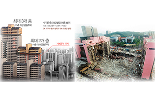 건설총파업, 노동자와 시민의 안전을 지키는 싸움으로 [%=사진4%] 세월호 참사 이후 안전에 대한 관심이 높아졌지만 사고는 지금 이 순간에도 끊임없이 발생하고 있다. 한국은 OECD국가 중 산재사망률 1위 국가다. 그 중 업종사망률 1위는 건설업이다. 한 해 건설노동자 700여 명이 산재 사고로 목숨을 잃는다. 이 와중에도 정부는 안전을 위협하는 건설 부문의 규제완화 정책을 추진하고 있다. 수직증축 리모델링이 그 대표적인 사례다. 작년 정부가 발표한 ‘주택거래 정상화 대책’ 안에는 리모델링시 ‘수직증축’을 허용하는 방안이 포함되어 있었다. 작년 12월 국회 국토교통위원회에서 이 같은 내용이 포함된 주택법 개정안이 통과되었고, 세월호 참사가 발생한지 일주일도 지나지 않은 올해 4월 22일 주택법 시행령 일부 개정안이 국무회의에서 의결됨으로써 4월 25일부터는 수직증축 리모델링이 허용되게 되었다. 수직증축 리모델링이란? 수직증축 리모델링은 준공한지 15년 이상 된 공동주택에서 최대 3개 층까지 증축을 허용하는 것이다. 주택법이 개정되기 전에도 준공 후 15년이 넘은 아파트는 리모델링이 가능했다. 다만 기존에는 건축물에 옆으로 덧대 면적을 확장하는 '수평증축'과 단지 안의 여유부지를 활용한 '별동신축'만 허용되었을 따름이었다. 하지만 별도의 동을 신축하거나 수평으로 증축할만한 여유공간을 두고 설계된 아파트 단지는 거의 없었다. 따라서 기존 리모델링 방식으로는 법에서 규정된 용적률 증가 허용분 규정(전용면적 85㎡ 이하는 기존면적의 40%, 85㎡ 초과는 30%)을 활용하기가 힘들어 관련 건설업계와 노후 아파트 주민들의 수직증축 허용 요구가 꾸준히 제기되어 왔다. 리모델링은 건물을 완전히 부수고 새로 짓는 재건축과 다르다. 재건축의 경우 지은 지 40년 이상 된 아파트여야 가능하다. 수직증축 리모델링은 준공 후 15년만 지나면 되기 때문에 적용할 수 있는 아파트가 훨씬 많다. 현재 그 대상이 되는 아파트는 약 430만 호·19만 3000여 동이며, 국내 아파트 재고의 절반(49.1%)에 달하는 것으로 추산되고 있다. 공사 기간 역시 수직증축 리모델링이 재건축에 비해 훨씬 짧다. 시세차익을 노리는 투자자들에게도 단기간에 성과를 노릴 수 있는 수직증축 리모델링이 더 구미에 맞을 것이다. 또 수직증축 리모델링은 재건축과 달리 소형평형 아파트를 의무적으로 지어야 하는 '소형평형 의무비율' 강제조항이 없다. 즉 세대수 증가로 인한 이득과 주택가치 상승은 모두 아파트를 소유한 조합원에게 사유화되는 것이다. 특히 비강남권은 주택가격이 상대적으로 낮아 수익성이 낮기 때문에 이 정책의 수혜는 강남과 분당 등 특정지역에 국한될 것으로 예상된다. [%=사진2%] 이명박 정부조차 안전성을 이유로 반대한 수직증축 이런 수직증축 리모델링은 이명박 정권조차도 안전성을 이유로 거부해 왔을 정도로 심각한 문제가 있다. 국토교통부의 2010년 연구보고서 ‘공동주택 리모델링 세대증축 등의 타당성 연구’에서는 수직증축 리모델링 건물의 구조안정성에 대해 “오래된 공동주택의 경우 도면이 없는 경우가 많아 기존 구조물의 성능파악에 한계가 있고 기존에 수직증축에 대한 대비가 없어 수직증축이 진행될 경우 기초 및 수직부재에 과도한 부담을 줄 수 있으며 증축을 위한 접합・보강설계 및 시공이 복잡하게 이루어짐에도 불구하고 관련 기준 및 시방이 미비한 실정”으로 평가하고 있고, 또한 “기존의 재건축에 버금가는 철거와 이주 및 증축을 수반하는 리모델링으로 […] 이러한 방식은 철거에 의해 구조체의 물리적 수명을 오히려 단축시킬 수 있어 본래의 철근콘크리트(RC)조의 수명이 도래하기 전에 구조체의 전면철거가 불가피”해 질 수 있다고 결론 내리고 있다. 이를 바탕으로 국토교통부는 2012년 12월까지도 수직증축 불가 입장을 고수해 왔다. [%=사진3%] 요약하자면, 도면이 없어 애초에 구조강성을 파악할 수 없는 건물도 많고, 설사 도면이 있더라도 설계대로 시공이 되었다는 보장도 없다는 말이다. 또 정부에서는 안정성 검사를 이주 전 1차, 이주 후 내장재를 제거한 상태에서 2차로 실시하여 안전성을 확보한 뒤 공사를 진행한다고 하고 있지만 세월호 참사에서도 보았듯 건설사의 이해 앞에 안전성 검사가 제대로 이루어질 지는 의문이다. 입주민들이 다른 곳으로 이주한 상태에서 내장재까지 뜯었는데 안전성이 보장되지 않으니 공사를 할 수 없다고 말할 ‘간 큰’ 기관이 어디에 있을까? 대형참사를 부른 규제완화, 수직증축에도 이어지나 수직증축 리모델링은 건설사의 새로운 돈벌이가 된다. 리모델링 시 수직증축 여부는 아파트 입주자로 구성된 리모델링 조합에서 결정한다. 그렇다고 자산가치를 위해 위험을 감수하는 것을 기업과 입주자들이 자율적으로 판단하게 둬도 될까? 수직증축 허용은 1990년대 이래 정부가 추진해온 전형적인 규제완화 방식을 따르고 있으며, 그러한 규제완화가 대형참사의 배경적 원인이 되어 왔음에 주목해야 한다. 서해 페리호 사고 이후 정부가 맡고 있던 운항관리 업무는 선주들의 조합인 해운조합으로 이관되었고, 해운조합에