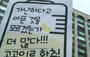 [2014년 최저생계비 결정에 대한 규탄 성명] “가난한 이들의 현실을 외면한 밀실야합 중생보위의 졸속적 최저생계비 결정 규탄한다” 보건복지부는 8월 14일 열린 중앙생활보장위원회 회의에서 최저생계비를 결정하여 발표하였다. 2014년 최저생계비는 올해보다 5.5% 인상된 163만 820원(4인가구 기준)으로 복지부는 이를 두고 역대 세번째로 많이 오른 금액이며, 계측년도 평균 최저생계비 인상률 수준을 상회하며 작년에 비해 높은 수준으로 인상되었다고 평하였다. 그러나, 기초생활수급당사자와 관련 노동-사회-시민단체로 구성된 민생보위는 이러한 결정을 심히 유감스럽게 생각한다. 국민기초생활보장제도가 시행된 지 13년이 된 올해, 법에 규정된 ‘건강하고 문화적인 생활을 유지하기 위한 최소한의 비용’으로서 기능하지 못하는 열악한 최저생계비를 현실화해야 한다는 사회여론과 지적이 각계각층에서 활발히 일어난 바 있다. 때문에, 정부 입장에서도 최저생계비 계측과정의 비현실적인 측면을 개선하고 최저생계비를 대폭 인상하리라는 기대감이 존재했는데, 이러한 기대에 미치지 못하는 결과가 발생한 것이다. 첫째, 최저생계비가 대폭 올랐다는 주장의 기만성 최저생계비 결정과 관련한 언론의 보도는 대체적으로 최저생계비가 대폭 올랐다는 반응이다. 하지만 이는 복지부의 보도자료의 편향적 태도에 근거한 것이다. 역대 세 번째 높은 인상률이라고 하지만, 1999년 최저생계비가 계측된 이래, 계측조사는 총 5회에 불과했고, 인상률을 측정할 수 있는 조사는 4차례이다. 그 중 세 번째 높은 인상률이라는 것은 꼴찌에서 두 번째에 불과한 인상률에 대한 말장난에 불과하다. 복지부는 역대 ‘세 번째 높은 인상률’이라는 말만 내세우고 있지만 이는 최저생계비의 상대적 수준이 점점 낮아지고 있는 현실을 무시한 왜곡된 태도다. 최저생계비는 처음 도입된 99년 당시 도시근로자가구 평균소득의 40% 수준이었다가 점점 낮아져 현재 30%에 불과한 실정이다. 소득 격차를 해소하고 실질적인 빈곤대책을 강화하는 데 그만큼 한계가 있다는 얘기이다. 점점 바닥을 향한 최저생계비 수준을 개선하기 위해서는 더욱더 혁신적인 인상안이 제시되어야 하는 상황에서, 물가인상률보다 조금 높은 수준으로 인상한 것을 두고 대폭 인상안으로 선전하는 태도는 납득하기 어렵다. 둘째, 국민생활실태조사를 바탕으로 생활의 질 변화를 반영했다는 왜곡 보건복지부는 보도자료를 통해, 주거비 산출 기준 면적 조정, 피복신발비의 내구연수 조정 등으로 생계비 계측을 현실화하였다고 밝히고 있다. 그러나, 실질적 구성변화 품목을 살펴보면 기가 막힐 노릇이다. 교육비로 초등학생 줄넘기, 후프를 각 1개씩 추가했는가 하면, 주거비 산출의 기분 면적을 37㎡에서 40㎡로 소폭 상향하는 것에 그쳐 실질적인 빈곤가구의 주거비 부담수준을 전혀 반영하지 않은 채 생색내기를 하고 있다. 내구연수를 높였다는 피복신발비 품목을 보면 더욱 기가 막힌다. 신사·숙녀복의 내구연구는 기존 12년에서 10년으로 조정, 동내의, 속치마의 내구연수를 기존 6년에서 3년으로 조정, 장갑을 기존 6년에서 2년, 허리띠 6년을 3년으로, 운동화를 4년에서 2년으로 조정했다는 것이 그 내용이다. 여전히 빈곤층의 생활 기준을 최저의 밑바닥으로 설정하고 있으며, 도저히 납득 불가능하였던 기존의 기준을 소폭 조정한 것에 그치는 내용을 대폭 상향이라는 언사로 포장하고 있는 것이다. 당신이 매일 출근해야 하는 가장이라면 단가 9만원짜리 동복신사정장 2벌로, 단가 8만원짜리 춘추복정장 2벌로 10년을 버티고, 당신이 주부라면 단가 9만원짜리 동복숙녀복 2벌, 단가 7만원짜리 춘추복정장 2벌로 10년을 입을 수 있겠는가? 당신이라면 매일 입어야하는 동내의 단가 2만원짜리 3벌로 6번의 겨울을 날 수 있는가? 한동안 휴대폰을 생필품에 넣을 것인가 말 것인가로 논란을 벌이더니, 한 벌의 동내의와 장갑으로 몇 년을 버티느냐는 것을 가지고 전문가 위원 몇 명이서 대단히 자의적으로 결정해버리는 중생보위는 빈곤한 사람들을 또 한 번 좌절하게 하고 있다. 전문가가 자의적으로 계측하는 최저생계비 조사과정이 실생활에 들어맞지도 않을뿐더러 수많은 사회적 논란을 야기할 뿐이라는 것을 보건복지부와 중생보위는 아직도 모른단 말인가? 셋째, 제도 개편을 준비하는 시점에 이루어진 졸속적 밀실야합 최저생계비 결정 보건복지부는 보도자료를 통해 금번 최저생계비 결정 내용은 내년 1월부터 9월까지 적용될 것이며, 10월부터는 개별급여 전환과 함께 중위소득을 기준으로 한 상대적 방식 도입을 추진하겠다고 밝혔다. 이들은 중대한 제도 개선 논의 과정에서 지속적으로 참여를 요구해온 수급당사자와 관련 시민사회단체들을 철저히 배제한 채, 숱한 문제제기에도 불구하고, 자신들만의 제도 개편안을 구체화시키고 있다. 보건복지부의 제도 개편안은, 기존 7개의 통합급여를 생계/주거/의료/교육급여 등으로 각각 분리하고 별도의 선정 및 급여 기준선을 마련하는 방향으로 가닥이 잡히고 있다. 그러나, 이는 종합적 빈곤대책으로서의 국민기초