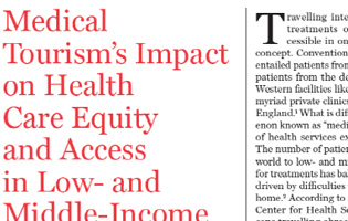 - “Medical tourism’s impact on health care equity and access in Low-and Middle-Income countries: Making the case for regulation” Y.Y.Brandon Chen and Collen M.Flood. 2013 민중건강과사회 23호에서 번역 소개한 논문입니다. 민중건강과사회 23호: 해외 사례 연구를 통해 살펴보는 의료관광의 문제점