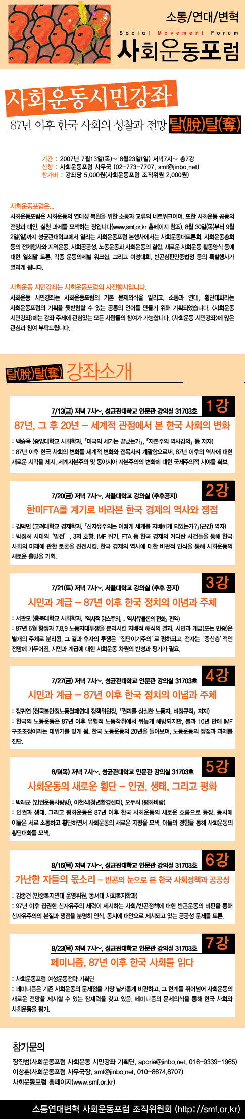 3. 7월 1일 비정규직법이 드디어 시행되었다. 그러나 뉴코아-이랜드 노동자들의 투쟁이 보여주듯이 정부가 비정규직 보호를 한다고 만든 비정규직법은 실제로는 비정규 노동자들을 해고와 계약해지, 외주화로 내몰고 있는 ‘비정규직 학살법’이다. 자본 측은 2년 이내에서 맘대로 계약직, 파견직 노동자들을 활용하는 수단으로 비정규직법을 이용하려 한다. 일각에서는 2년 이상 일한 비정규 노동자들을 정규직화 해야 한다는 조항을 피해가기 위해 ‘무기계약제’, ‘분리직군제’와 같은 무늬만 정규직인 비정규직 고착화 방안을 도입하기도 한다. 특히 이랜드에서는 노동자들이 해고와 외주와 반대 투쟁에 나서자, 노동자를 분열시키고 투쟁을 뒤흔들기 위해 직군제를 내놓았다. 그러나 노동자들은 그것이 언제든지 해고할 수 있는 또 다른 비정규직임을 파악하고 이를 철폐할 것을 요구하고 있다.