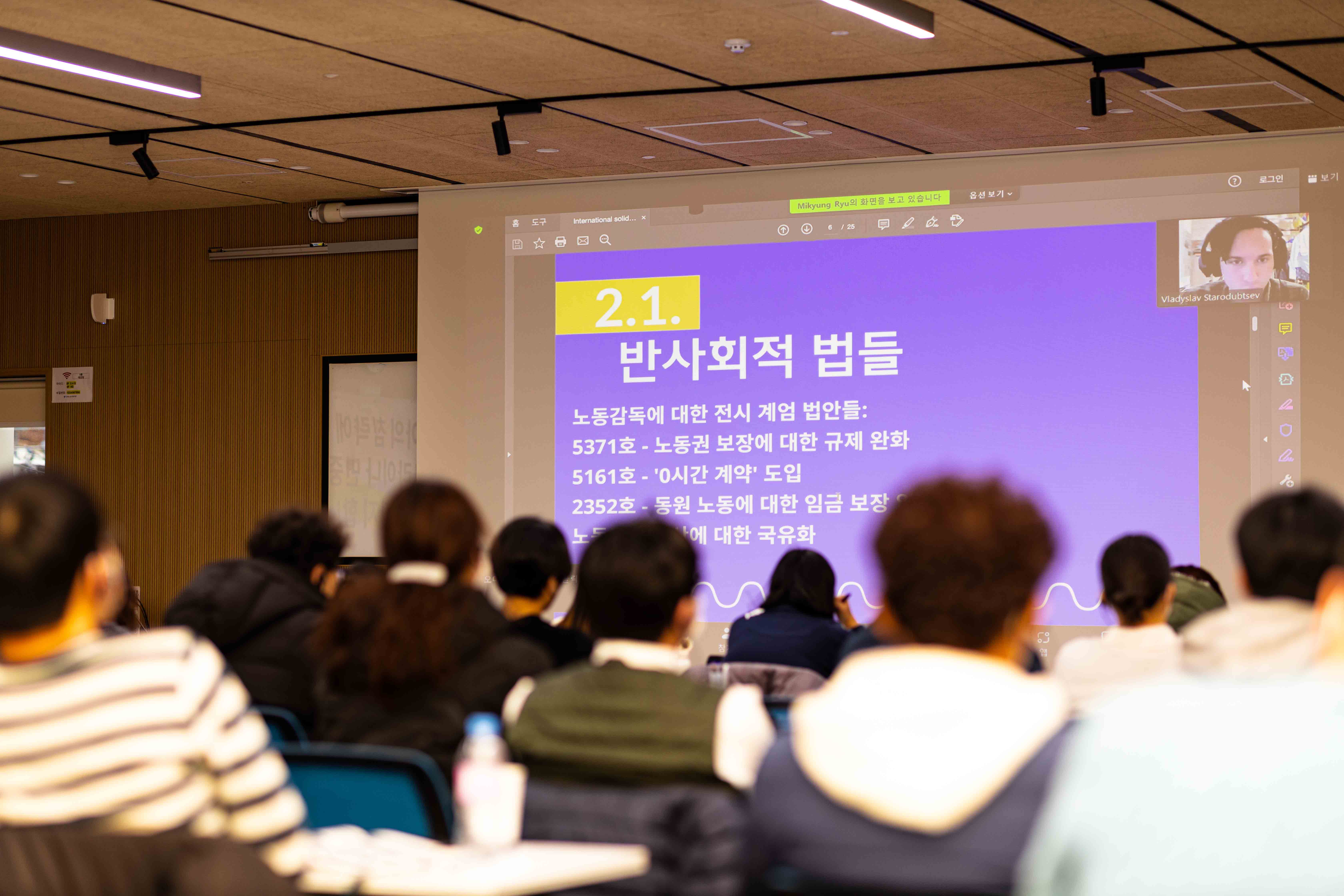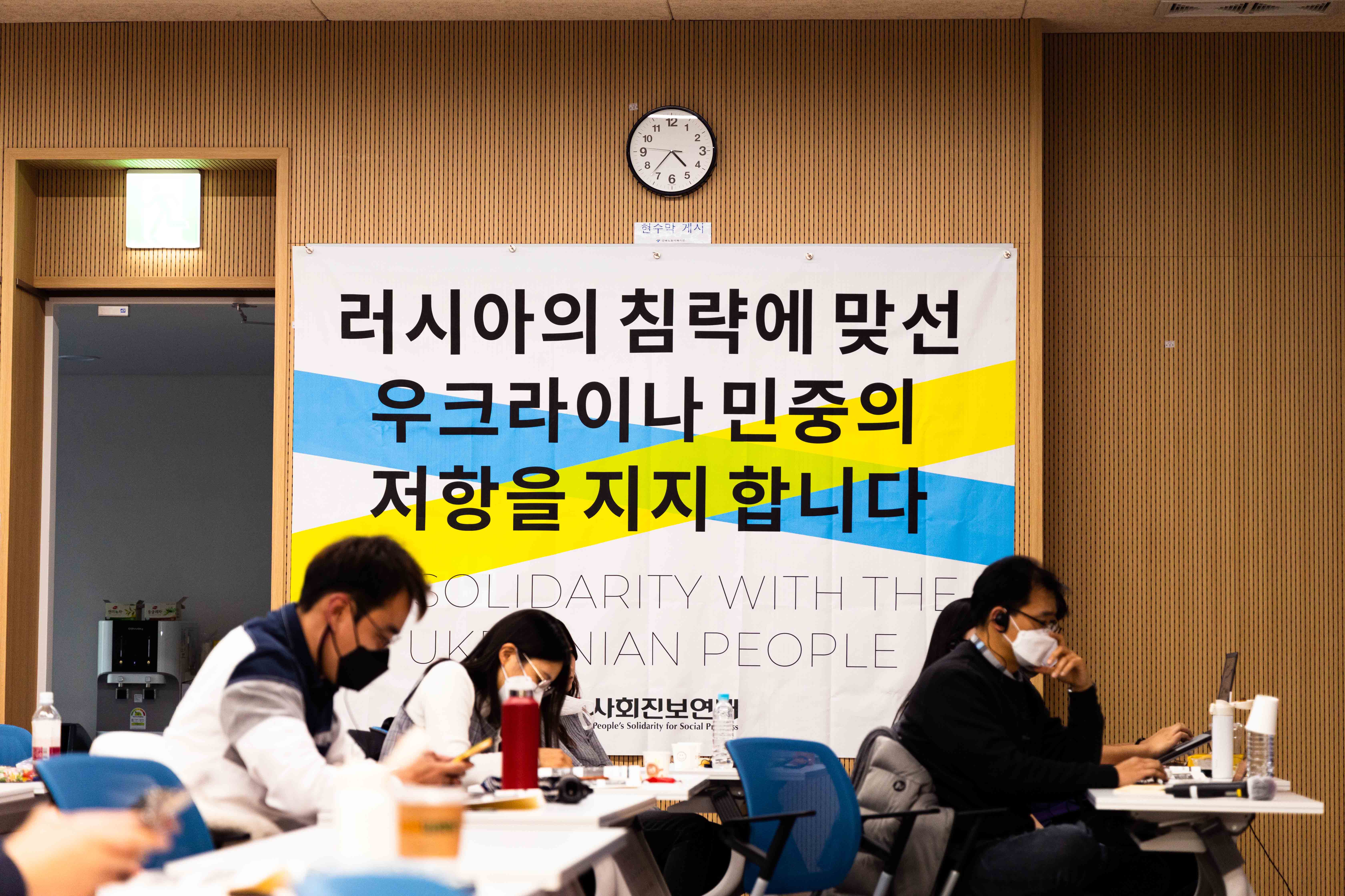 이러한 진영논리에 대한 전쟁 당사자들의 비판이 얼마 전 한국 사회에서도 있었다. 12월 6일~7일, 국제전략센터, 정의당 배진교 의원실 등의 주최로 일련의 행사가 <국제진보포럼: 미국이 벌이는 신냉전>이란 이름 아래 열렸다. 여기에는 노엄 촘스키, 비자이 프라샤드와 같은 유명 해외 좌파 인사들이 연사로 초청되었다. 이들은 미국에서 열린 “우크라이나의 평화로 가는 진정한 길: 협상” 포럼의 주요 참가자였다. 이러한 행사에 대해 재한 러시아인 반전단체 ‘보이시즈 인 코리아’(Voices in Korea)와 페미니스트 반전 저항 한국 모임은 주최 측에 공식 항의 공문을 보내고, 행사장 앞에서 피케팅을 진행했다.