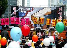 - 일 · 미 제국의 북조선압살 책동에 반대한다 핵에 대한 태도 10월 9일, 조선민주주의인민공화국(이하, 조선)의 조선중앙통신사는 조선 과학연구부문이 지하 핵실험을 진행했다고 발표했다. 인류를 파멸로 이끄는 핵무기가 이 지구상에서 없어져야 하는 것은 당연하다. 그것은 20세기 중반이래, 평화를 갈구하는 전 세계 인민들에게 가장 큰 투쟁 과제였다. 우리들은 어떤 국가든지 핵 위협에 핵으로 대항할 수 있다는 입장에 반대하며, 핵무기에 의해 평화가 지켜질 수 있다는 입장에도 반대한다. 특히 피폭국인 일본에서는 미군에 의한 원폭투하가 가져온 참화가 세기를 넘어 아직까지도 이어지고 있고, 그 중에는 일본군국주의의 식민지지배로 인해 강제 연행되어 히로시마, 나가사키에서 피폭당한 조선인, 한국인도 포함되어 있다. 핵을 보유하지 않고, 만들지 않고, 반입하지 않겠다는 일본의 비핵 3원칙은 이러한 일본군국주의 패배의 역사에서 일본인민이 얻은 교훈이다. 그리고 이 비핵 3원칙은 '국권 행사로서 전쟁과 무력에 의한 위협 혹은 무력행사를, 국제분쟁을 해결하는 수단으로서는, 영구히 포기한다.'는 내용의 헌법 9조와 더불어 전 세계에 널리 전파된 평화 투쟁 정신의 정수인 것이다. 우리는 오늘날 일본 현실 속에서 이것의 의미를 두 번 세 번 되묻는 필요에 긴박당하지는 않는다. 즉, 오늘날 이 원칙은 미 제국주의 핵우산 아래에서의 '비핵 3원칙' 이라는 2중 기준으로 작용하고 있는 일본의 현실인 것이다. 우리는 사무치는 회한을 가지고 반성하며 이 상황의 타파, 더 나아가 전 세계 핵 폐절 투쟁에 사력을 다해 참가할 것임을 맹세하기 위해 아래의 글을 천명하고자 한다. 이러한 입장에서 우리는 조선 정부가 실시한 이번 핵실험에 대해 강한 유감의 뜻을 표명하고 조선정부에게 이후 핵실험 중지를 요구하고자 한다. 우리가 이와 같이 주장하는 것은 지금까지도 그랬던 것처럼 일본노동자계급의 국제적 관점에 따라 한반도의 평화와 통일을 위한 한반도인민의 투쟁에 연대하는 것이며 그 연대의 기반을 더욱 더 강하게 하고자 하는 것이다. 누가 전쟁에 불을 지폈는가 현재 일 · 미 제국주의는 조선 핵실험발표를 최대한 악용하고 UN안보리를 끌어들여 조선에 대한 '제재'주장을 실행에 옮기려하고 있다. 핵탄두를 10,000발이나 보유하고, 대륙 간 탄도 미사일 등을 5,000발 이상 실전 배치하여 그 선제사용조차 공언하고 있는 부시정권에게 조선을 비난할 도덕적 근거나 권리가 있는가· 마찬가지로 미국의 핵우산 밑에서 군비를 증강하고 해외파병을 강행하고, 더 나아가 현재 헌법을 파괴하여 전쟁국가의 길로 나아가려고 하는 아베 정권에게 '제재'를 운운할 무슨 근거라도 있는가! 저들에게 조선을 비난할 자격은 단연코 없다. 더구나 NPT(핵무기 확산 방지 조약)에 의해 핵보유 국가는 군축의무를 준수하여야 하고 동시에 핵보유국이 비보유국을 무력으로 위협할 수 없음에도 불구하고 미제국주의는 그 일체를 지키지 않고 있다. 오히려 북한을 '악의 축'으로 규정하고, '핵 선제공격'대상국으로 겨냥하고 있다. 아베 정권도 그것을 용인하고 있다. 저들이야말로 조선반도를 전쟁으로 내몰고 평화와 통일을 방해하는 장본인이다. 현재 사태의 본질과 배경을 역사적으로 인식하고 있는 우리는 일 · 미 제국주의의 주도로 전개되고 있는 조선 '제재'에 단호히 반대하며 대화를 통한 문제해결을 요구한다. 사태의 근원과 경과 사태의 근본적인 원인과 경과는 개략적으로 다음 3가지로 요약할 수 있다. (1) 조 · 미 관계는 6.25 전쟁의 정전협상 이후 50년이 지난 현재까지도 전시 대치상황에 있다. (2) 1990년을 전후로 동구권 및 소련 연방의 사회주의 체제가 붕괴한 이래 미제국주의는 점차 조선에 대한 압살책동을 강화해왔다. 그럼에도 불구하고 1994년에는 조 · 미간의 포괄적 합의가 성립되었다. 하지만 미제국주의는 일방적으로 합의안을 이행하지 않았고 결국은 합의 자체를 파탄 내고 말았다. (3) 2002년 부시 대통령의 '악의 축', 핵 선제공격 발언에 대항해 2003년에 조선정부가 NPT 탈퇴를 선언하고 그 직후 영 · 미군을 중심으로 한 이라크 침략전쟁이 시작되자 동북아시아는 한 순간 긴장상태로 치달았다. 2003년부터 조선, 미국, 중국, 러시아, 한국, 일본이 참가하는 6자 회담이 개최되어 왔다. 그리고 2005년 9월 참가국들은 제4차 6자 회담에서 공동성명을 발표하여 '공약 대 공약, 행동 대 행동'원칙에 기초하여 조선반도 비핵화와 조 · 미 간 국교정상화를 이루어 나갈 것임을 선언하였다. 하지만 그 직후 부시 정권은 조선의 '달러 위조 의혹'을 제기하여 조선에 대한 '금융제재'를 실시하였고 6자 회담은 암초를 만나게 되었다. 미 · 일 압살책동 이처럼 미제국주의는 조 · 미 대치관계의 해결의 실마리가 찾아질 때마다 협정과 약속을 이행하지 않았다. 또 그 이유를 날조하여 사태를 복잡하게 만들어 조선 사회를 피폐하게 하였고 체제전복을 노렸다. 그리고 일본 언론은 이 같은 사실을 무시하거나 왜곡보고하며 '무모하고 위험한 조선'이라는 이미지를 일본인민들에게 심어놓았다. 이 가운데 올해 7월 5