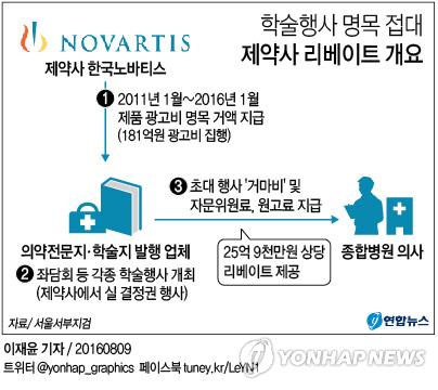 보건복지부는 4월 27일 의약품 리베이트를 제공한 한국노바티스의 행정처분 내용을 발표했다. 행정처분을 받게 될 약품 중 현재 급여 대상인 의약품은 42개였다. 그 중 대체할 수 있는 의약품이 없는 23개 품목은 과징금 처분을 받게 되었으나, 나머지 19개 품목 중 단 9개만이 급여 정지 처분을 받았다. 급여를 정지할 경우 환자에게 심각한 영향을 줄 수 있거나 급여 정지의 실효성이 없다는 이유에서다. 이 9개 약품에는 백혈병의 오리지널 치료제인 '글리벡'이 포함된다.