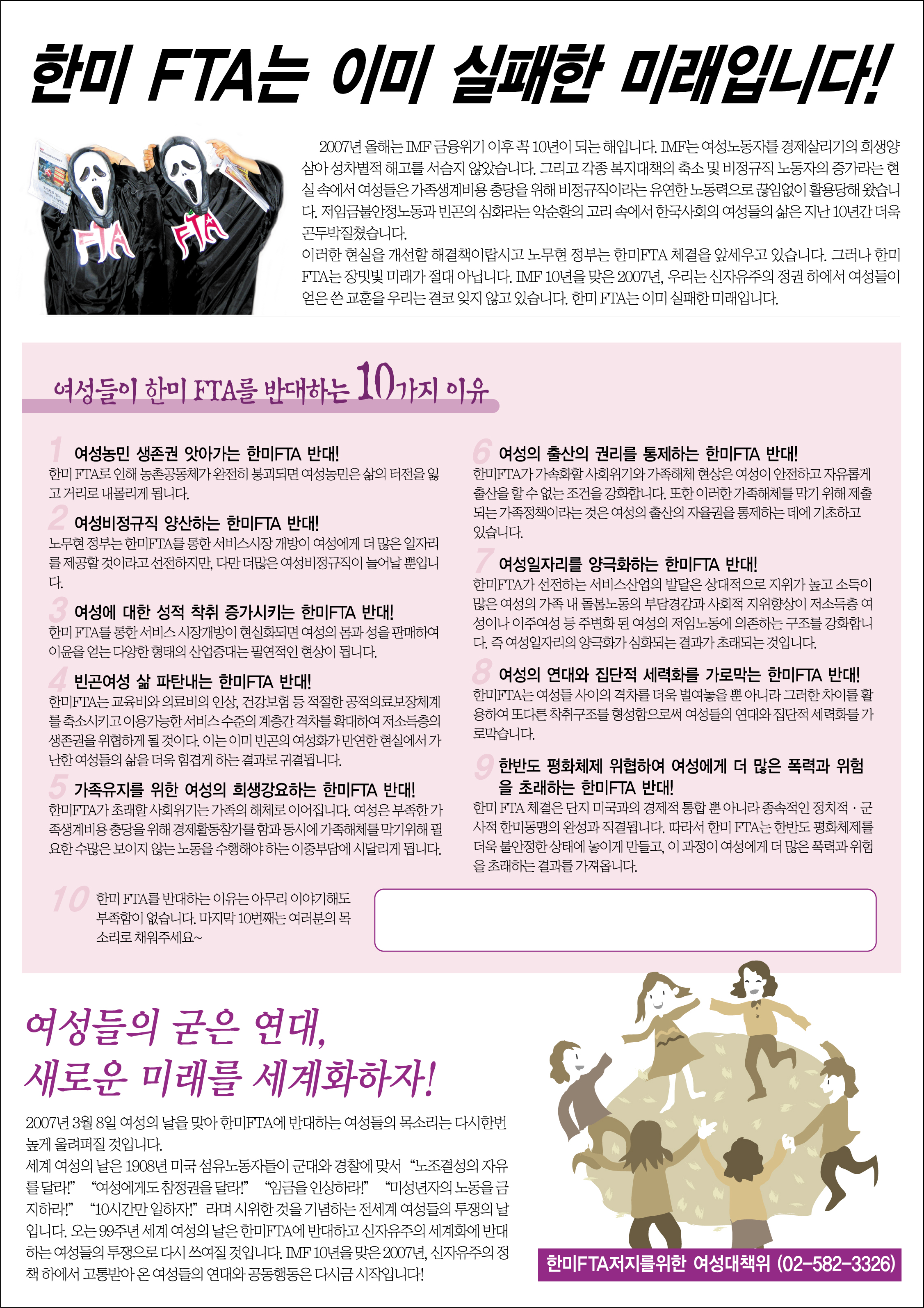 한미FTA 여성대책위 정책팀에서 만든 유인물입니다.