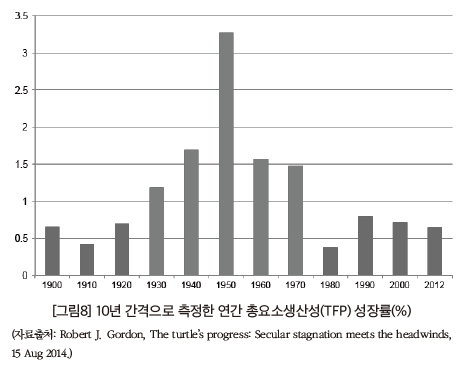 1) 기술혁신의 감속, 생산성 하락