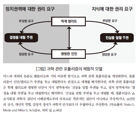 따라서 기술관료 지배에 대한 정치적 거부로서 포퓰리즘적 과학부정론에도 그 뜻이 ‘갸륵하다’고 여겨질 부분이 있어 보일지도 모르겠다. 하지만 그들이 정치과정에서 전문가를 배제하자고 할 때, 그 공백을 채우는 것은 ‘인민의 의지’를 가장한 포퓰리스트의 독재라는 사실을 잊어서는 안 된다.