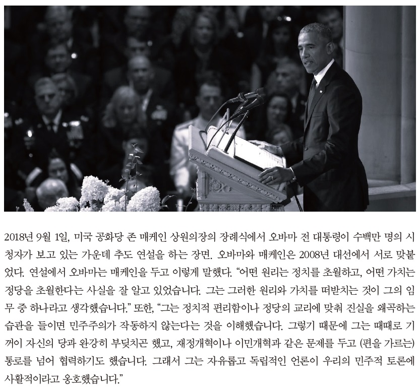 그래도 우리가 시사점을 찾을 수 있는 사례가 있다면 현직 대통령 트럼프 공화당 후보와 바이든 민주당 후보가 맞붙은 2020년 대선에서 공화당 유력인사들이 바이든 지지를 선언한, 이른바 ‘바이든 리퍼블리컨’(바이든 후보 지지 공화당원)일 듯하다. 대표적으로, 대선 전날 존 매케인 전 상원의원의 부인 신디 매케인은 《USA 투데이》에 대통령의 품격을 강조하며 “바이든은 분열된 국가를 통합하고, 모든 미국인을 하나로 모아 도전을 극복할 것이다. 그는 이번 대선일에 자랑스러운 공화당원의 표를 받을 것”이라고 썼다. 공화당 소속 필 스콧 버몬트 주지사도 “평생 민주당 대선 후보를 지지한 적이 없었지만, 이번엔 바이든에게 투표했다”며 “당을 넘어 나라를 위해 투표했다”고 말하기도 했다.