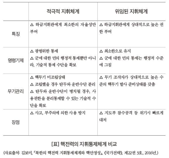 △ 위임된 지휘체계에서는 핵 사용의 임계점이 낮아진다. 극단적인 경우, 현장지휘관의 판단에 따라 우발적인 핵전쟁의 가능성이 열린다.