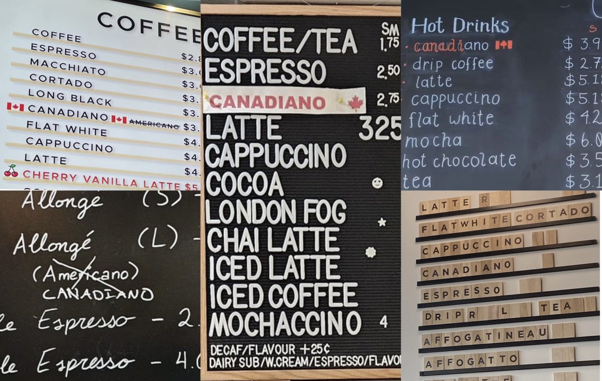 올해 2월, 트럼프의 관세 압박에 대한 불만이 고조된 캐나다 곳곳의 카페들에서 ‘아메리카노’를 ‘캐나디아노’로 바꾼 메뉴판이 등장했다. (사진출처: 《뉴시스》)
