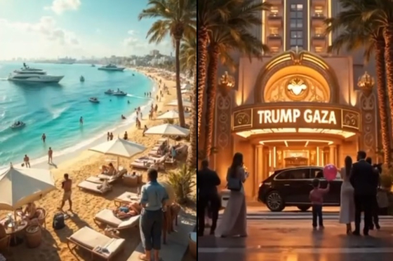 이 영상은 트럼프의 구상대로 휴양지로 개발된 가자지구라는 주제로 AI로 만든 것이다. 지중해와 맞닿은 가자지구 해안이 해수욕장으로 변하고, ‘트럼프 가자’라는 이름의 리조트가 들어선다는 내용이 담겼다.