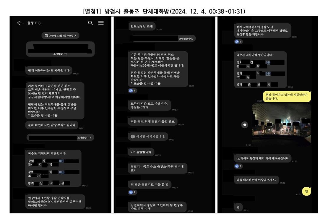 [그림] 방첩사 출동조 단체대화방
