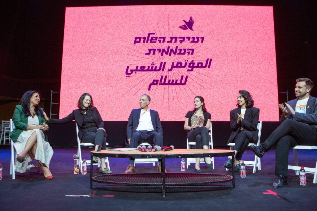사진은 5월 9일 민중평회정상회의(People’s Peace Summit) 포럼 둘째 날 진행한 “파트너가 있고 길이 있다: 심연에서 벗어날 정치적 해결책” 세션 중 패널토론 장면이다. 해당 세션은 올메르트 이스라엘 전 총리와 팔레스타인 자치정부 전 외무장관인 나세르 알키드의 두 국가 해결안에 관한 발제가 있었다. 이후 진행된 패널토론에는 시민단체 활동가인 메이 푼닥, 룰라 하르달(모두를 위한 땅)과 에란 니산, 라완 오데(피닉스 프로그램) 그리고 니달 포카하(제네바 이니셔티브)가 참여해, 연합국가 방안, 안보와 국경, 난민 문제를 비롯한 구체적인 쟁점에 관한 토론을 진행했다. (출처: New Israel Fund)