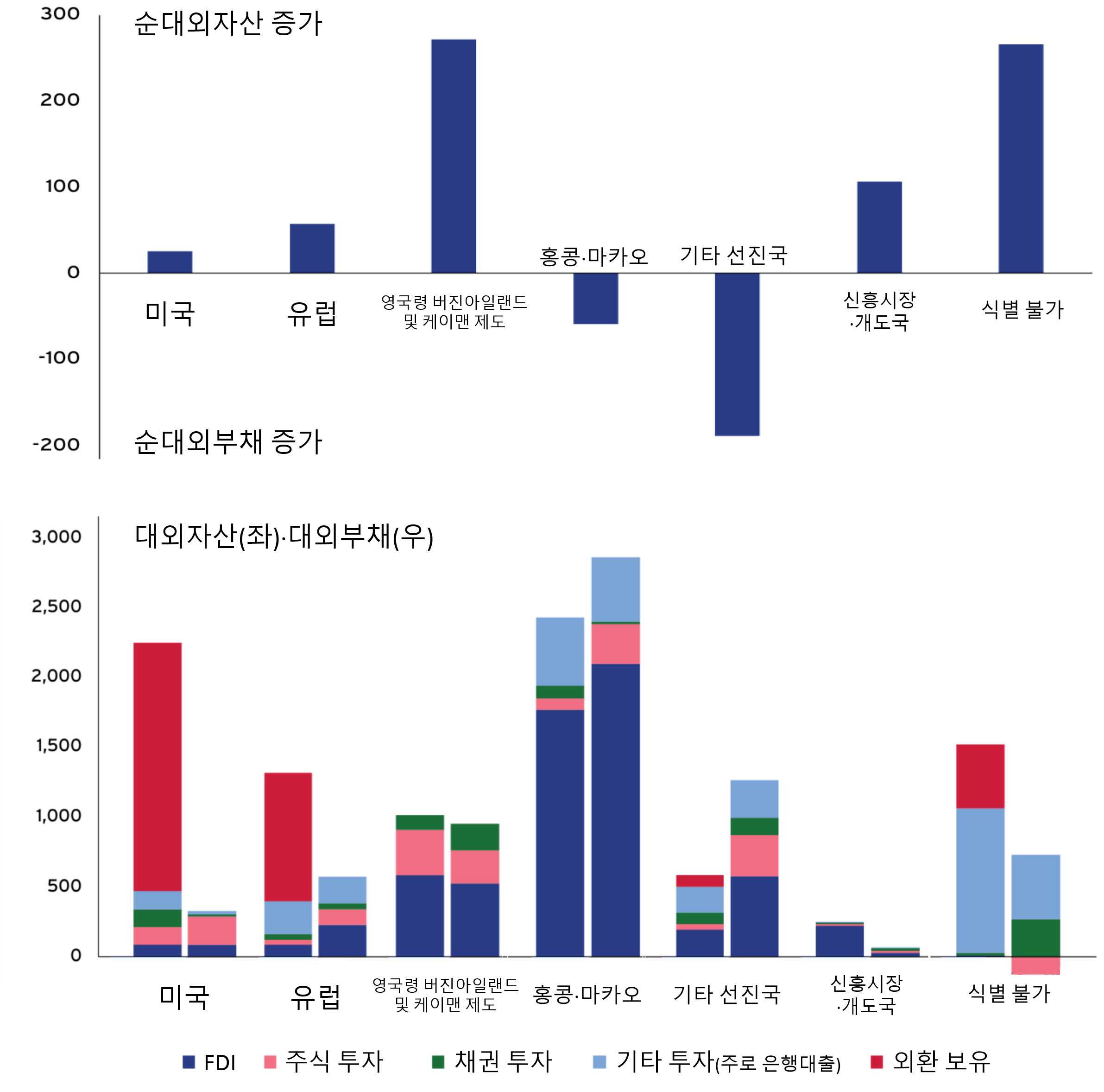 넷째, 미국과 선진국의 신흥시장 대상 투자, 특히 FDI는 신흥시장의 수출 부문에 자본과 기술을 공급했다. 이는 다시 신흥시장의 수출 확대로 이어지며, 첫째부터 설명한 패턴이 반복되는 순환 구조를 형성했다. (이런 패턴이 뒷받침하는 미국의 ‘특권적 이익’에 대한 더 깊은 설명은 케네스 로고프의 『달러 이후의 질서』(2025; 국역: 윌북, 2025)를 참고할 수 있다)
