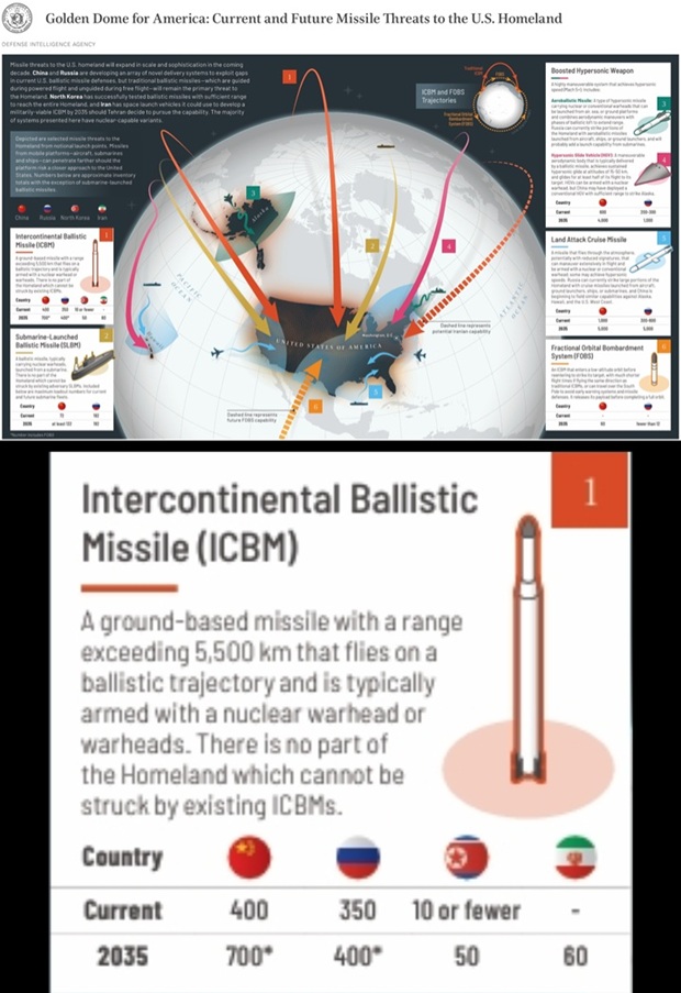 “북한은 2025년에도 핵무기 3축 체계를 완성하기 위한 새로운 운반시스템 시험을 지속했습니다. 북한은 극초음속 운반체를 탑재한 신형 대륙간탄도미사일 시험발사를 발표했으며, 핵추진 잠수함도 공개했습니다. 북한의 전략 핵무기와 미사일 능력 개발을 위해 러시아가 지원을 확대할 가능성이 높은데, 이는 북한이 러시아를 위해 우크라이나 전쟁에 군대를 보낸 대가일 수 있습니다. 이러한 가능성은 일부 미국 동맹국[한국, 일본]이 자체 핵무기 개발을 모색하도록 부추기고 있습니다.”
