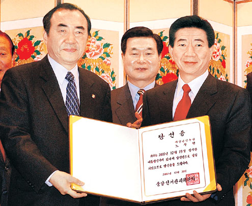 집권 말기 DJ의 몰락은 매우 급속하게 진행되었다. 2001년 11월 DJ가 총재직을 사퇴하고 2002년 6월 TV생중계로 두아들의 구속에 대한 대국민사과문을 발표할 때까지 그는 사태를 거의 제어할 수 없었다. 한나라당은 6·13 지방선거까지 이어지는 '연전연승'의 기세를 타고 쉽게 정권탈환을 손에 쥘 수 있을 듯 보였다. 노무현조차 국민경선을 통해 민주당 대선후보로 결정되는 과정에서 DJ에 대해 모호한 태도를 유지했고, 여론의 동향을 추종하는 태도를 보였다. 경선 승리 직후 노무현의 대선 구상 역시 불투명했다. 예컨대 "원칙과 상식", "국민통합" 등 추상적 구호를 내걸거나 "정의가 강물처럼 흐르는 세상을 만들자"와 같이 정서에 호소할 뿐이었다. 6·13 지자체 선거에서 한나라당이 압승을 거두어 전국 16개 광역단체장 자리 가운데 11곳 장악할 때 그는 속수무책이었다. 민주당은 극심한 혼란에 빠져들 수밖에 없었다.