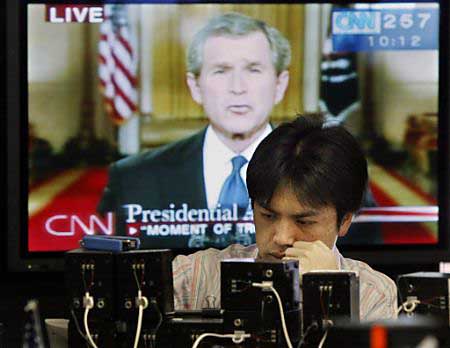 미국의 지도자들은 또한 펜타곤이 남-동 아시아에서 구축해온 방어 구조에 일본이 더욱 적극 참여하기를 바라고 있다. 몇 개월 전 조지 부시 행정부의 무역 대표로 임명된 로버트 젤릭은 여기에 역사적 변화가 포함되어야 한다는 점을 인식하였다. 그는 일본, 미국, 남한, 호주가 군사관계를 강화하여, 아시아 미군 내부로서 일본 자위대로 대통합되는 방향으로 진전되기를 희망하고 있었다.{{) R.B. Zoellick, A Republican Foreign Policy, Foreign Affairs, vol.79, no. 1, p. 74.