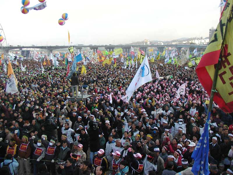농민들은 작년 10만 투쟁을 일구어냈다. 전국 각지 읍, 면, 마을에서 올라온 농민들의 입에서 "WTO반대", '한칠레 자유무역협정 반대", "신자유주의 철폐" 등의 목소리가 터져나왔다. 이제 민중들은 신자유주의 세계화와 직접 대면하게 된 것이다. 한발짝만 더 내딛으려 해도 신자유주의 세계화의 그 날선 칼날은 몸을 베어온다. 그렇지만 그것을 거스르지 않고서는 더 이상 어떻게 살아볼 도리가 없다. 아무리 개혁적인 정부가 들어서고 운동진영 출신 인사가 정부에 들어간다 한들 WTO, 투자협정, 자유화의 흐름을 막아내지 못한다. 이제 세계는 '다른 세계'를 적극적으로 지향하지 않으면 안되게 되었다. 그것은 전세계 투쟁하는 민중들의 몫이다.