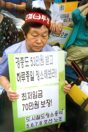 원래 환경미화원의 임금은 1988년부터 행정자치부에서 일괄적으로 임금수준을 결정하여 지자체에 지침으로 내려보낸다. 그런데 지자체가 청소업무를 민간용역업체에 위탁한 뒤로 청소업체들은 갖은 명목으로 미화원에게 책정되어 있는 임금과 복리후생비를 착복하였고 법정 수당도 제대로 지급하지 않는 경우가 비일비재하다.