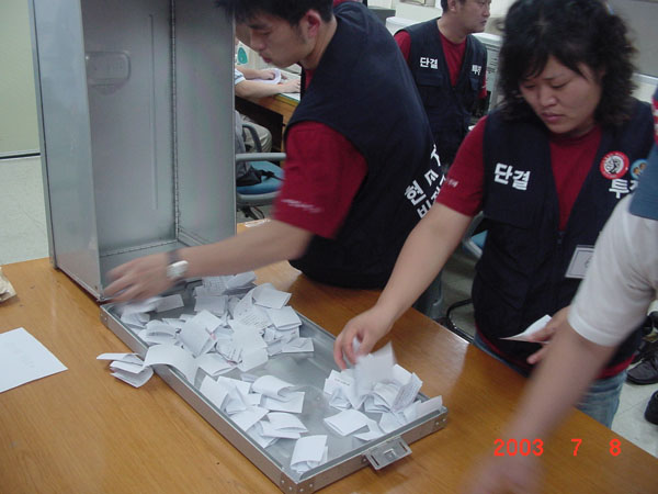 둘째, 노사정위에 전술적으로 참여해야 한다는 실용주의가 다시 고개를 쳐들고 있다. 현대차 투쟁이 '대리전'적 양상을 띄는 것이라 할 때, 최악의 경우 98년 현대차 정리해고 반대 투쟁처럼, 적절한 선에서 (정규직화) 숫자싸움만 하고 "계급적 단결의식 고취"라는 측면에서 철저히 패배하는 판이 그려질 수도 있다. 현장에서는 열심히 싸우는데, 노사정위에서 그르칠 공산이 크다는 얘기다.