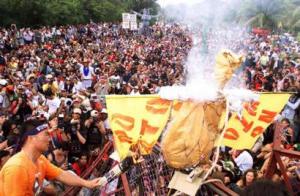 그러나 이번 각료회의에서 개도국들은 ‘G22(농산물수출개도국그룹)’, ‘ACP(아프리카․카리브해․태평양 연안국가들)’과 같은 그룹을 형성하여, 도하개발의제와 이 협상을 주도하는 미국과 유럽연합에게 불만을 강력하게 표출하였다. 2년 전 미국과 유럽연합은 도하개발의제 협상을 ‘개도국과 최빈국의 관심사항을 대폭 반영하여, 이들 국가도 자유무역의 혜택을 고루 누릴 수 있도록 하는 것이 목적’이라는 사탕발림으로, 이 협상라운드의 출범이 모두에게 이익이라고 주장했다. 개도국을 위한 무역협상이라는 도하개발의제에 개도국들이 불만을 터뜨려 결국 협상이 결렬된 상황은, 미국과 유럽연합의 이러한 주장이 사실이 아님을 드러내주었다. 정작 미국과 유럽연합은 농업협상에서도, 싱가포르 이슈에서도 개도국과 최빈국의 요구를 받아들이지 않으려는 자세로 일관했다. 식량, 에너지, 의료, 교육과 같이 민중들의 삶에 필수적인 공공 서비스를 상품화하여 자본의 이윤놀음의 대상으로 탈바꿈시키는 도하개발의제는 애초부터 ‘개발’과는 관계가 없었던 것이다. 초국적 자본의 소유권을 철저히 보호하고 자유로운 활동을 보장하면서 전 세계 민중들의 모든 권리를 박탈해 갈 뿐.
