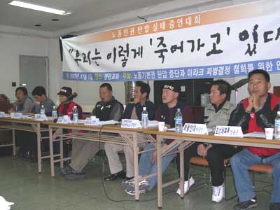 11월 ‘노동기본권 탄압 중단과 이라크 파병 결정 철회를 촉구하는 인권단체’들이 모여 <2003년 노동기본권 실태보고서>를 제출하였다. ‘국제인권 기준으로 본 노동기본권의 현 주소’라는 제목의 이번 보고서는 30여 개의 단체가 참여하여 결성된 노동기본권실태조사팀이 작성한 것이다.
