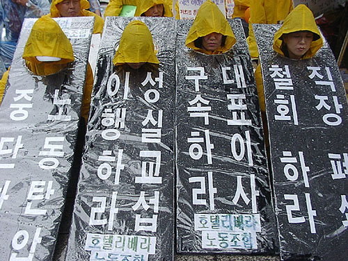 2003년의 마지막 날 열린 집회에서 부하직원으로 일했던 계약직 사원에게 폭행을 당하고 몇 시간 동안 울음을 그치지 않았던 한 여성조합원의 모습도 잊을 수 없다. 이렇게 어이없는 일을 당하면서도 우리가 지키고자 하는 것은 무엇인가.