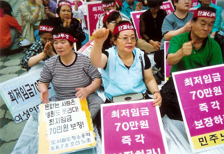 4) 빈곤사회연대 및 불안정노동과 사회빈곤화에 맞서는 여러 연대조직과 함께 최저임금 투쟁을 협소한 의미의 임금노동자의 문제로부터 보다 확장시키기 위한 활동들 역시 적극적으로 요구되는 지금이다. 최저임금 투쟁의 인식을 최저생계비 투쟁으로까지 확대하고, 최저임금 투쟁에 대한 연대와 지원을 넘어서는 反신자유주의 투쟁의 주체형성을 위한 현장과 지역활동의 결합력을 높이기 위해 다양한 기획사업이 배치되어야 할 필요성이 존재하는 것이다. 예를 들자면, 우리 단위·현장·지역·조직에서 이런 실천은 어떨까?