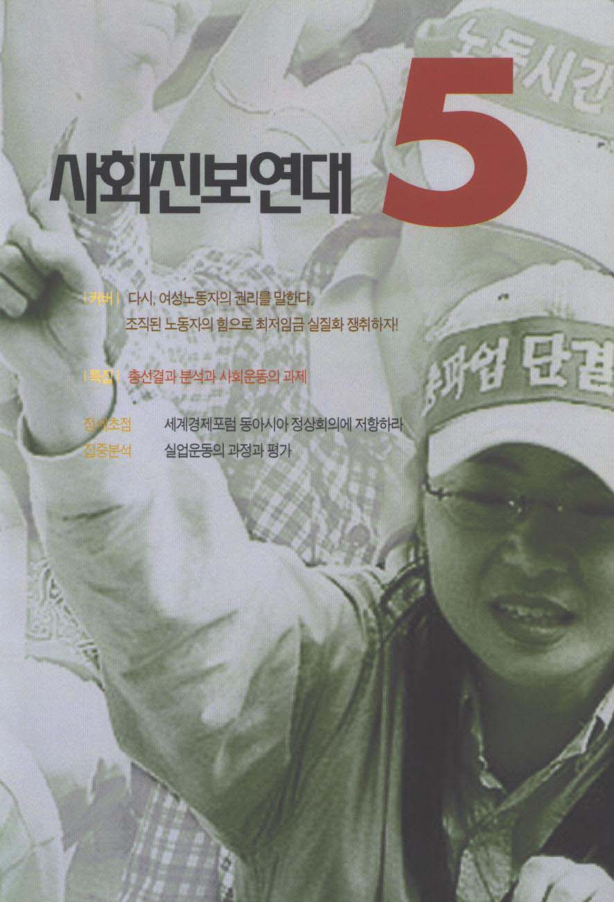 특집 "총선 이후 사회운동의 전망과 과제"에서 이상훈은 불안정한 양당체제를 낳은 17대 총선 투표결과를 분석하고, 신자유주의 위기관리체제 하에서 정치의 위기, 그로 인한 민주주의의 박탈을 분석하고 있다. 그는 신자유주의적 정치위기와 정치개혁 추진 속에서 의회에 진출한 민주노동당의 성패는 정당과 사회운동과의 관계를 어떻게 사고하고 실천할 것인가에 달려있다고 말하면서, 반신자유주의 전선복구야말로 현실적이고 사활적인 과제임을 주장하고 있다.