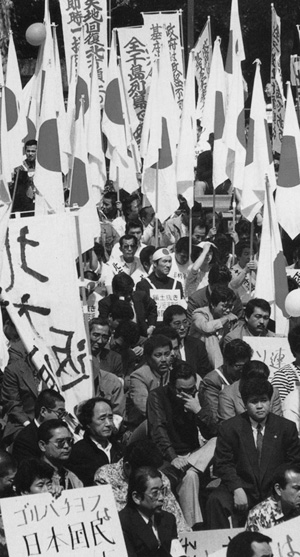 하지만 전노련은 지지 정당인 일본공산당의 의회주의와 시민운동적 노동운동에 편향되어, 직장생산점(生産點: 생산현장)에서의 계급적 긴장관계를 유지하면서 직장투쟁 속에서 파업 태세를 구축하는 운동을 포기한지 오래다. 따라서 사공(사민당과 공산당)에 의한 일일공동투쟁(一日共鬪) 대중집회로는 동원을 지시하더라도 직장생산점에는 영향이 못 미치는 것이다.