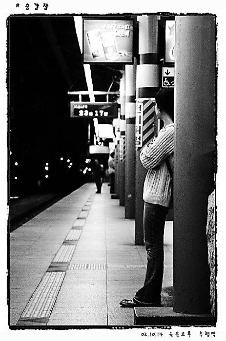 2004.7-8.47호 프린트 승강장 최윤식 | 모든 기다림에 의미를 부여한다면 세상은 의미의 덩어리로 무덤이 될지도 몰라. 차마 너에게 닿지 못하는 의미로도... 하지만 기다리겠어. 강철궤도의 떨리움 속에... 네가 있었으면 좋겠어. S1pro <02.10.14 늦은 오후, 부평역> 주제어 태그 531지방선거 Twitter Facebook Katalk Me2Day