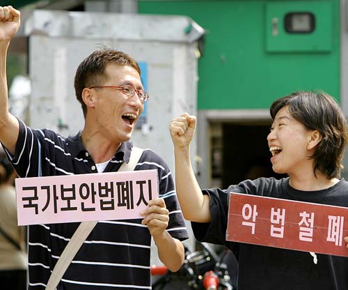 4.15 총선 직후부터 서서히 달아오르기 시작한 국가보안법 개폐 논쟁은 지난 8월 23일의 국가인권위원회의 전면 폐지 권고, 8월 26일의 헌법재판소의 국가보안법 7조 1항과 5항에 대한 전원 일치 합헌 결정, 9월 2일 대법원의 한총련 대의원에 대한 유죄 확정 판결로 이어지면서 우리 사회의 보혁 대결 구도로 나아가고 있는 양상이다.
