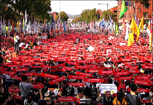 노무현 정권이 지금까지 걸어온 길을 가만히 살펴봅시다. 노무현 정권의 핵심화두는 ‘참여’였습니다. 이제는 정부가 직접 모든 일을 하는 것이 아니라 국민의 참여를 기반으로 국가를 운영하겠다는 것이 ‘참여정부’의 핵심정책이었죠. 이런 노무현 정권은 과거의 군사독재 등의 억압적 국가체제와는 분명히 구분됩니다. 군사독재는 경찰, 군대 등의 폭력적 국가기구를 통해 노동자민중의 국가에 대한 개입을 억눌렀습니다. 그러나 노무현 정권은 그런 무식한 방법을 쓰지는 않습니다. 노무현 정권은 노동자민중의 국가참여를 보장한다고 선전합니다. 실제로 386세대의 정치개입, 시민단체의 정책개입, 노사정 합의체제 구축 등으로 참여를 보장하는 듯합니다. 문제는 여기에 있습니다. 노무현 정권은 많은 대중이 국가 운영에 참여한다는 명분을 가지고, 자기 마음대로 국가를 이끌 수 있는 것이지요. 이런 의미에서 노무현 정권을 포퓰리즘 정권이라 칭하는 것입니다.