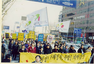 언론이 이들의 목소리를 여론으로 주목할 때는 아마도 제도권을 위협할 정도의 강력한 투쟁이 동반될 때일 것이다. 구조조정과 민영화에 반대하는 수만명의 노동자, 농가부채탕감과 농업개방에 반대하는 수만명의 농민이 집회, 시위를 하고 자신들의 요구를 제출해도 묵살해 버리는 언론, 그러나 어딘지 모르는 대학의 조그만 교실에서 몇십명이 모여 토론하는 낙천낙선운동은 대문짝만하게 보도하는 언론, 이것이야말로 한겨레가 여론을 왜곡하고 있다는 진상이 아니고 무엇이겠는가? 교양있는 한겨레가 왜 그럴까? 집권당과의 신자유주의 연대 이외의 다른 어떤 것으로 설명될 수 있을까?