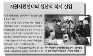 최근 수많은 실업관련 단체들이 가지고 있는 화두는 "자활"이다. 정부가 공공근로의 일부분을 시민단체들에 할당하면서 활성화된 "자활"은, 정부의 기본적 지원을 바탕으로 자립할 수 있는 소규모 생산/서비스 단체를 설립하는 방향으로 구체화되고 있다. 10월 시행되는 국민기초생활보장법에서도 '근로능력이 있는 자'의 자활후견기관 참여를 의무화하고 이에 필요한 자활후견기관을 선정할 것을 명시하고 있다. 이에 각 지방자치단체에서 할당된 후견기관 선정을 위해 각 지역 시민단체들로부터 접수를 받고있는 것으로 알려져 있다.