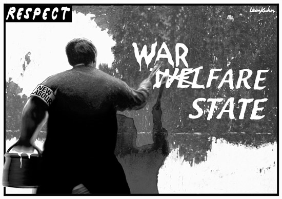 신노동당의 총선구호 중 하나는 "전쟁은 잊어라, 문제는 경제다"였지만, 블레어 정부를 말할 때 전쟁을 빼놓을 수 없다. 역사적으로 노동당의 지도자들은 보수당보다 더 미국에 아첨하는 모습을 종종 보였다. 영국이 한국전쟁에 지상군을 파병하는지를 보고 협력관계를 결정하겠다는 미국대사의 말에 놀라 애틀리 정부는 국가보건체계 기금을 빼돌려 군대를 무장해 한반도에 보냈다. 윌슨은 베트남전쟁에 군대를 보내는 데에는 머뭇거렸지만 미국의 전쟁수행에 박수를 보냈다. 누구보다도 블레어는 클린턴에게 '당신이 가는 곳이라면 나도 가겠다'고 맹세했고, 신노동당은 워싱턴의 노예가 되었다. 1998년 10월과 2000년 여름 <사막의 여우> 작전이나 NATO의 78일에 걸친 유고슬라비아 공중폭격 때 블레어는 백악관보다 더 매파적인 태도로 일관했다. 이는 미국 대통령이 부시로 바뀐 후에도 마찬가지였다.