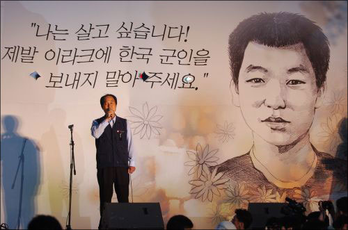 1년 전 6월, 김선일은 이렇게 말했다. "여러분의 목숨이 소중하듯이 내 목숨도 소중합니다. 제발 도와주십시오. 죽고 싶지 않습니다", "한국군은 철수해야 합니다. 부시, 노무현 대통령, 당신들은 잘못하고 있습니다." 그러나 노무현 정권은 곧바로 추가파병 방침에 변화가 없고 테러에 굴복할 수 없다며 김선일의 가슴에 비수를 꽂았다. 6월 22일 김선일의 시신이 바그다드 근처 도로변에서 발견되었고 태극기에 덮인 관에 실려 국내로 들어왔다.