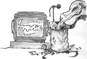 '거액'을 투자한 요즘의 뮤직 비디오들은 드라마화된(dramatized), 그것도 폭력물 아니면 구애·실연의 삼각관계 멜로물로 편중되는 경향이 짙다. 그 결과 음악은 잘 '들리지' 않는다. 영상은 잘 보이는데, 음악은 영상을 위한 '배경음악' 같기만 하다.