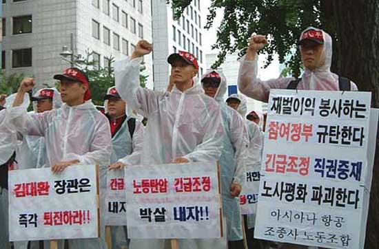 그렇다면 노조와 노동운동 진영의 대응은 누가 누구의 편인지를 분명하게 밝히는 것이 되어야 했다. 문제는 그것이 요구안의 성격이나 기자회견, 선전으로 되는 것이 아니라는 점이다. 항공기를 이용할 형편도 되지 못하는 비정규직 노동자들에게 항공안전이라는 요구는 남의 나라 이야기로 들린다. 그것은 실제 투쟁의 장에서 연대투쟁을 통해서 보여주어야 한다. 고임금 노동자라도 왜 나와 같은 노동자인가를 인식하기 위해서 유명 노동강사 선생님들의 강의를 듣는다고 되는 일이 아니다. 나와 같은 노동자라는 것을 확인하는 장소는 바로 연대투쟁의 장소이기 때문이다. 공동의 요구를 가지고 연대 투쟁할 수 있다는 것을 발견할 때 대립의 전선이 이동될 수 있다.