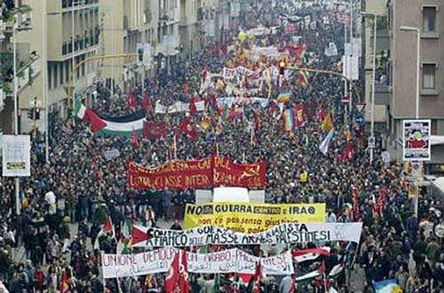 하지만 이라크 전쟁 2주년에 이탈리아 운동의 서로 다른 부문들은 서로 다른 선택을 했다. 운동의 한 부문은 “사회적 유럽”이라는 이슈에 더욱 개입하면서, 유럽사회포럼에 참여했고 브뤼셀 집회를 소집했다. 반제국주의자들과 평화주의자 그룹들은 로마에서 전국 반전 행진을 개최했다.